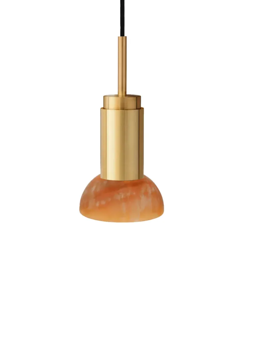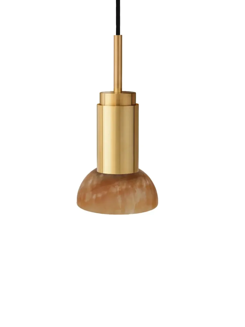 Nu fås Donya lampen fra Anour med skønne skærme i sten. Lampeskærmen her er i mixet Onyx og halvmåneformet. Onyx er en natursten, som er fyldt med harmoni og i skønne farver. Den grønne/orange/hvide skærm kommer med, hvad der ligner revner, som giver et skønt og diffust lys. Donya lampen er ideel at bruge over køkkenbordet eller til at sætte sammen flere og så hænge over spisebordet. Da skærmen er i natursten, vil hver eneste Donya ONYX Moon lampe være unik og helt sin egen. Donya lampefatningen kommer i mange forskellige finishes og materialer.