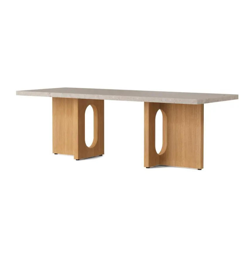 Androgyne Lounge Table er et elegant og skulpturelt sofabord, der forener funktionalitet med kunstnerisk udtryk. Bordet er kendetegnet ved sine harmoniske proportioner og raffinerede materialevalg, hvor den bløde træstruktur smukt balanceres af den markante stentop i italiensk Kunis Breccia-marmor.