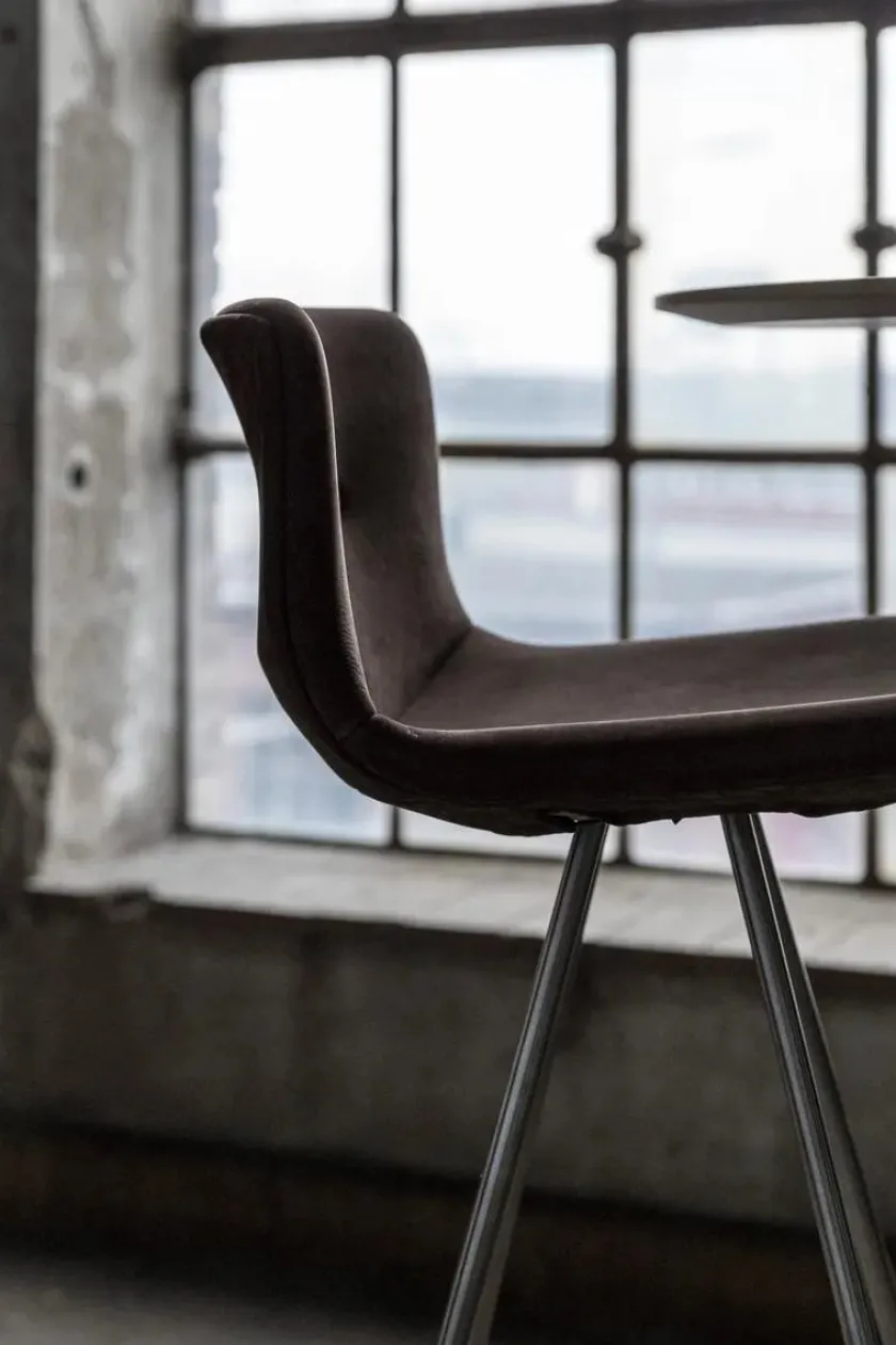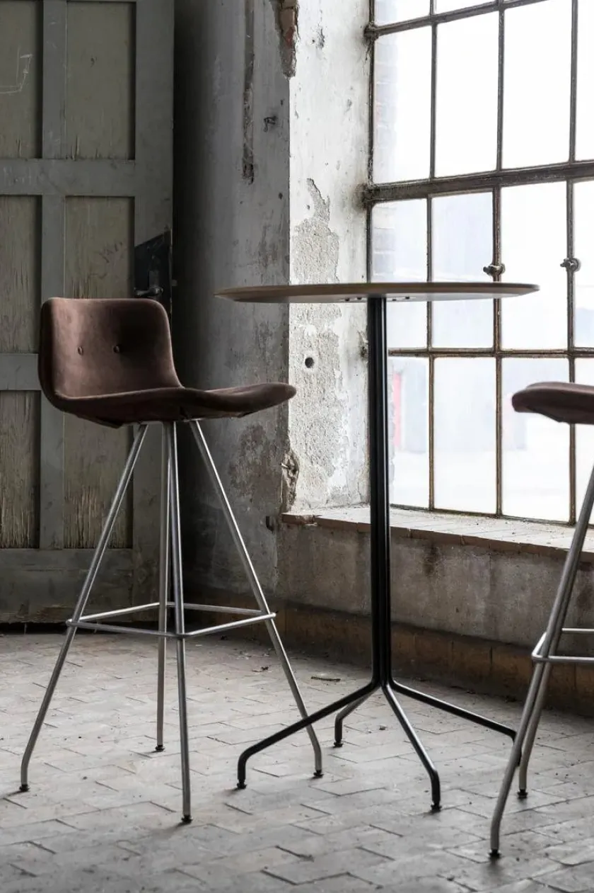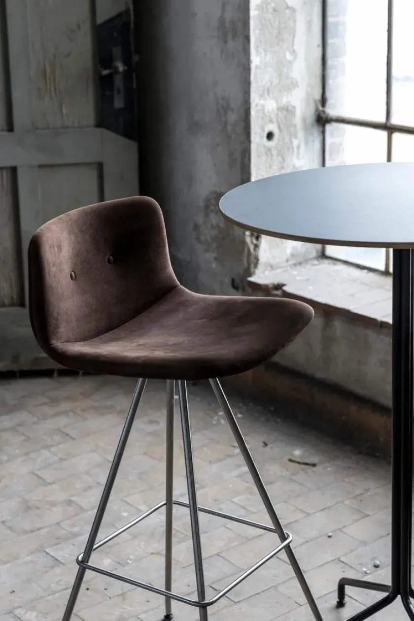 Barstolen Primum fra Bent Hansen fås i to højder i flere forskellige stof og lædertyper.