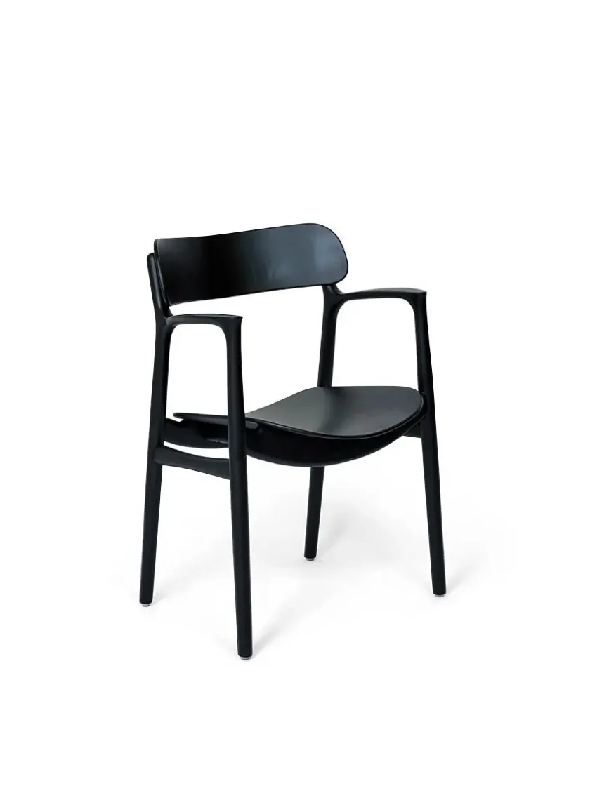 Asger spisestol fra Bent Hansen er designet af Asger Soelberg. Ideen bag stolen, var at udforme en træstol der havde samme komfort som en polsterstol. Der er derfor lagt stor vægt på udformning af sæde, ryg og armlæn, for at sikre den rette støtte. Stolens bevægelsesfrihed muliggør forskellige siddestillinger.