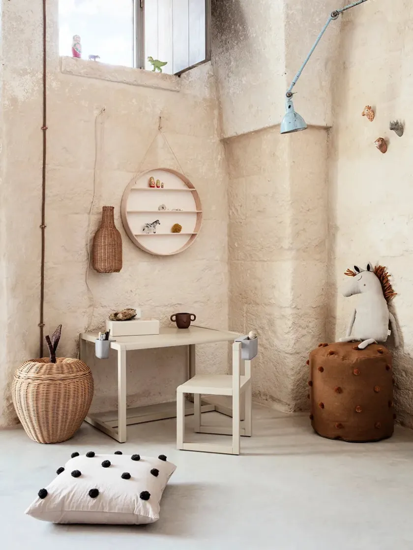 Little Architect bord fra Ferm Living til de små. Her kan de små udfolde deres kreative evner ved at tegne, male eller holde små middagsselskaber. Mix og match de forskellige farver og skab en legerig og kreativ kombination af bænke, borde og stole. Mål: B76 x H48 x D55 cm Materiale: Askefinér