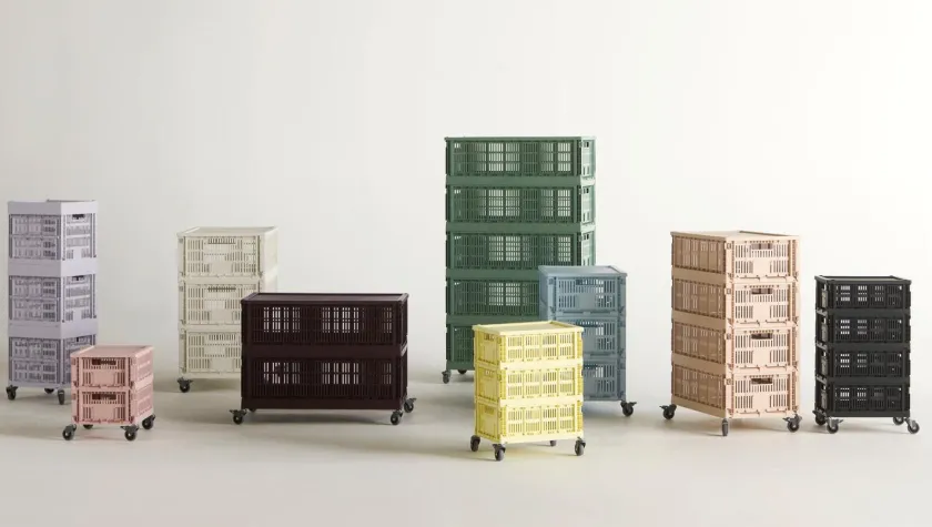 Med Colour Crate hjulene forvandler du dine opbevaringskasser til mobile og fleksible enheder, der kombinerer praktisk funktion med Hay’s velkendte designæstetik.