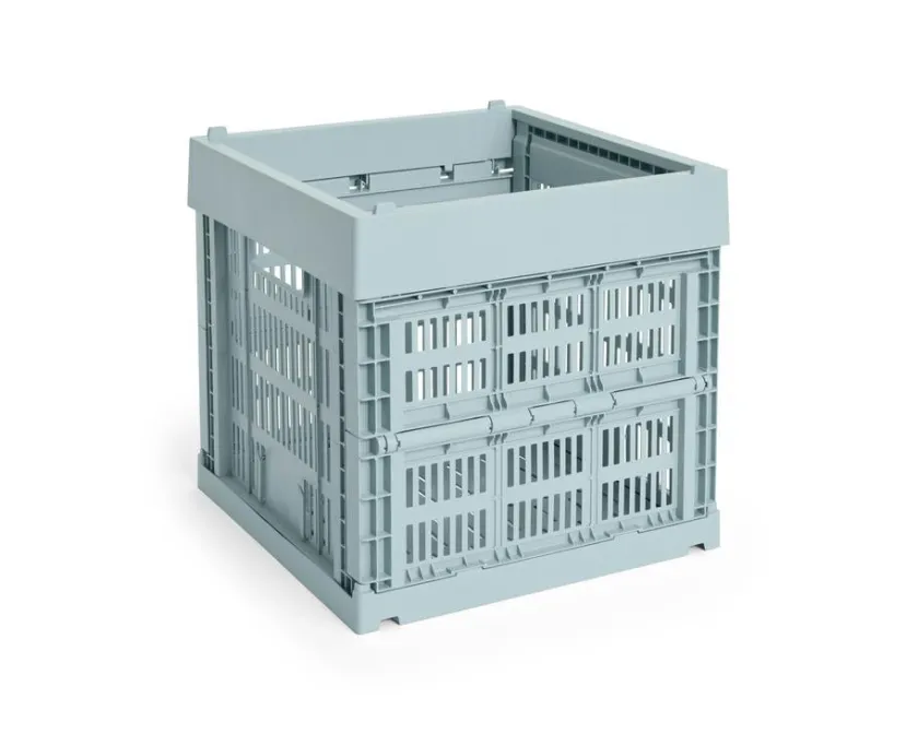 Inspirér dine rum med HAY Colour Crate Cube i den rolige, naturinspirerede nuance Sage Green – en multifunktionel kubisk opbevaringsløsning, der både taler til æstetik og funktionalitet. Uanset om det er i stuen, køkkenet, kontoret eller børneværelset, bringer denne crate orden på en stilfuld måde. Dens perforerede mønster giver luft og struktur, mens den lette konstruktion gør den fleksibel og nem at håndtere. Når den ikke er i brug, kan den foldes fladt for minimal pladsoptagelse – og når du har brug for opbevaring, kan den stables på kryds og tværs med andre crates fra HAY Colour Crate-serien, hvilket åbner op for kreative og personlige opbevaringsløsninger.