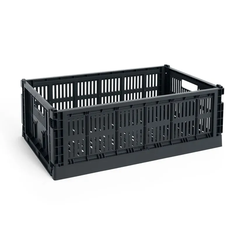 Skab orden med stil og gør opbevaring til en del af din indretning med Colour Crate Large – Warm Grey fra HAY. Denne rummelige og alsidige opbevaringskasse kombinerer funktionalitet og design med et tidløst look, der passer perfekt ind i både moderne og klassiske hjem. Den varme grå farve giver et blødt og roligt udtryk, mens de perforerede sider sikrer luftgennemstrømning og et let visuelt præg. Brug den i køkkenet til krydderier, i stuen til magasiner, på kontoret til mapper, eller som en stilfuld måde at organisere børneværelset på. Når den ikke er i brug, kan kassen foldes fladt sammen for nem opbevaring.
