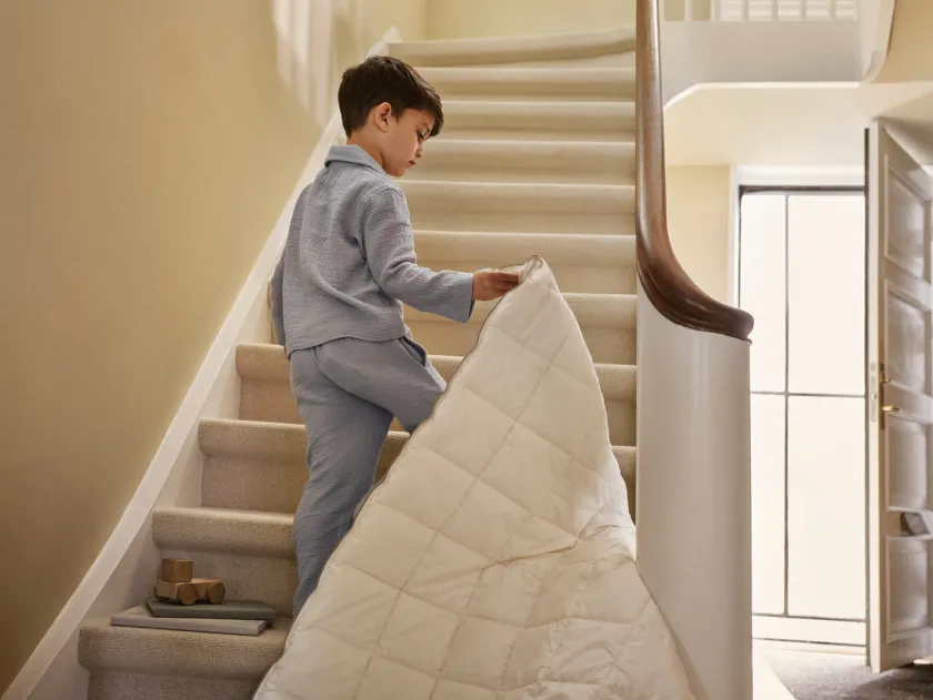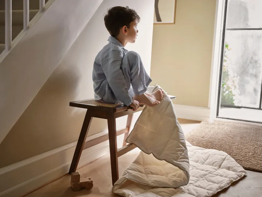 Giv dit barn de bedste forudsætninger for en tryg og rolig søvn med Moonboons bambusdyne i juniorstørrelse. Dynen er skabt i naturlige, åndbare materialer, der regulerer temperaturen og sikrer en blød, behagelig komfort natten igennem. Den er både let og luftig, hvilket gør den ideel året rundt, og den GOTS-certificerede bomuld i kombination med bambusfibrene giver en luksuriøs følelse, som børn elsker. Perfekt til at skabe en tryg søvnoplevelse, hvor kvalitet og bæredygtighed går hånd i hånd.