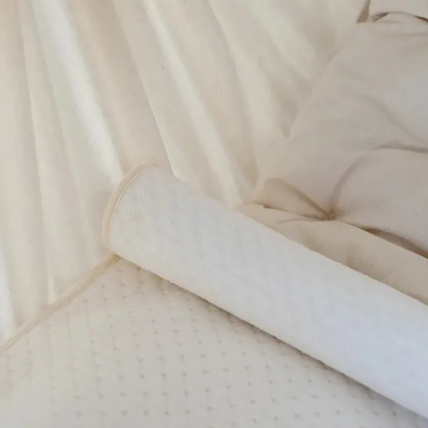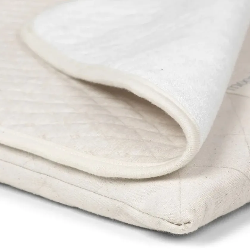 Med overflade i quiltet bomuld, som er blød og behagelig, samt det stærkt absorberende mellemlag, er madrasbeskytteren både behagelig og beskytter mod små uheld og pletter.