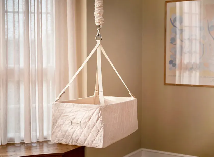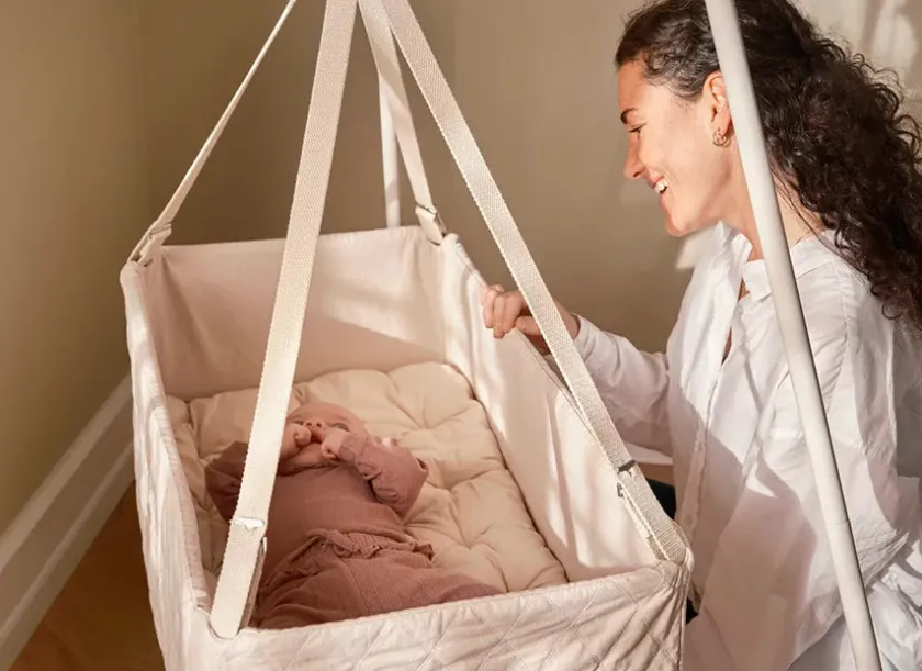 Vuggen fra Moonboon er en ny klassiker, der kombinerer muligheden for at sove på et fladt og fast underlag med beroligende vuggende fordele. Vuggen passer ind i alle hjem med deres smukke og enkle design.