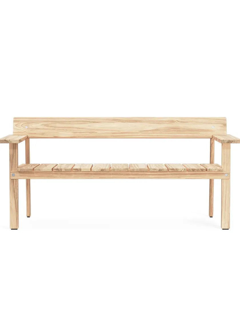 Timber bænken er designet af islandske Gudmundur Ludvik, som især har øje for naturen og traditionelt håndværk. Timbur havebænken er udført i ubehandlet teak, og er i et harmonisk design, der balancerer rolig enkelhed med robust styrke. Det ubehandlede teaktræ vil med tiden opnå et sølvgråt udseende, grundet naturligt slid fra vind og vejr.