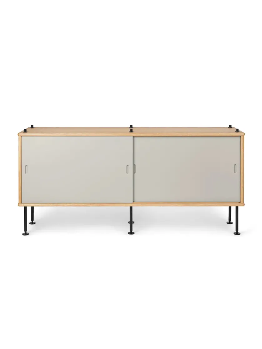 Denne opstilling indeholder: 1 x BM0253 Ben 20 cm. (6 stk.) 1 x BM0253 Skab 45 x150 cm. Inkl. et stangsæt 45 cm. (6 stk.), to skabshylder og forborede huller til placering. 2 x BM0253 Dør (fineret)