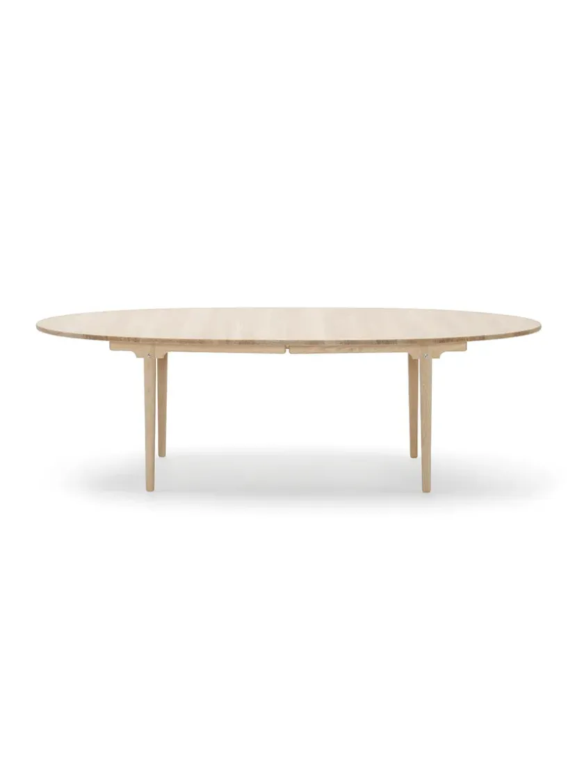 CH339 Spisebord designet af Hans J. Wegner for Carl Hansen & Søn. Spisebordet er lavet i massivt, sæbebehandlet egetræ. Bordet har udtræk til to tillægsplader og er inkl. 1 træstøtteben i sort. Bordet er eksklusiv tillægsplader.
