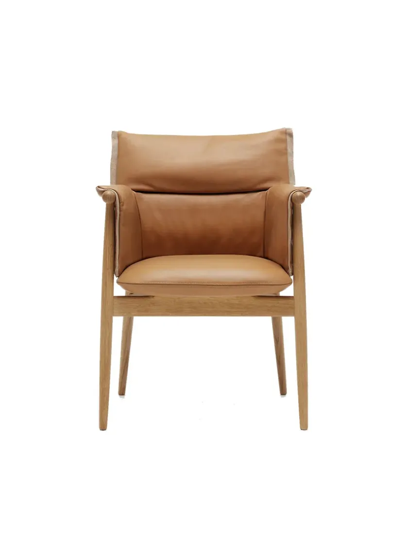 Embrace Chair er lavet af Carl Hansen og Søn i samarbejde med de 3 østrigske designere fra EOOS. Visionen har været at designe en ny konstruktion, udforske typologi og udtryk inden for denne kategori, og således skabe en stol, der samler en struktur af træ med blød polstring på en enkel og autentisk facon.