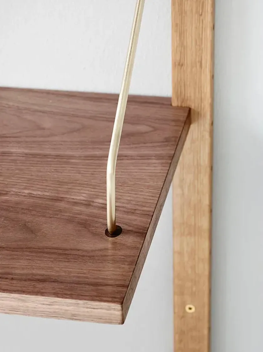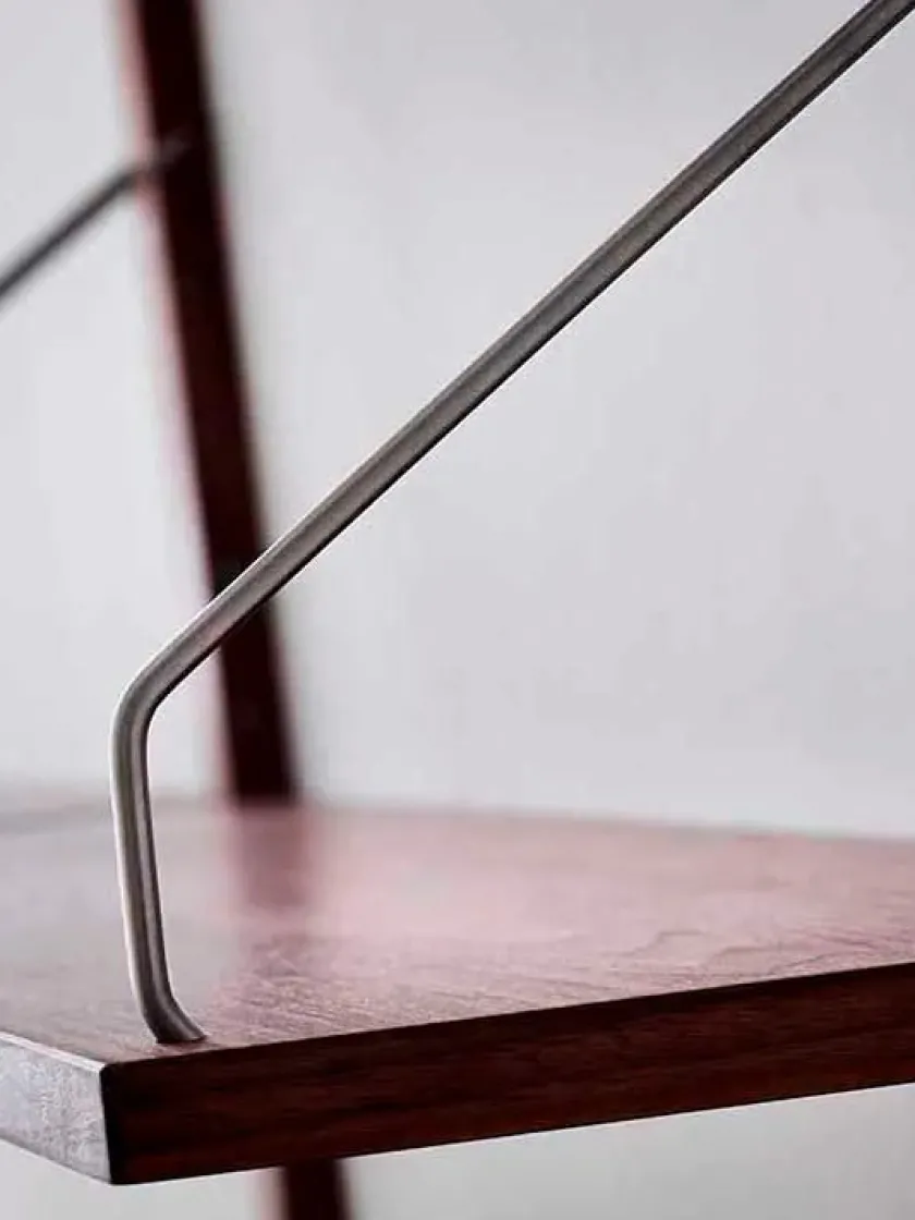 Reolen fås i materialerne, sortbejdset eg, røget eg, eg og valnød med bøjler i messing eller rustfrit stål.
