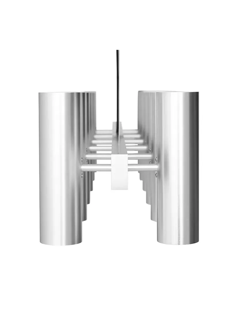Lampen er med 12 lyskilder, der er sammensat på en stålfarvet aluminiumsskinne.