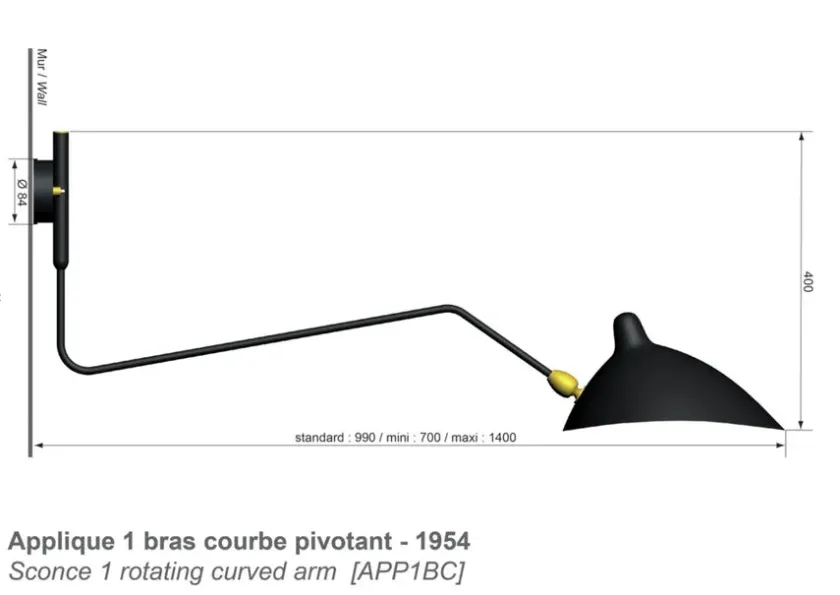 Editions Serge Mouille Væglamper|Spots<Big Wall Lamp w/1 Curved Arm af Serge Mouille