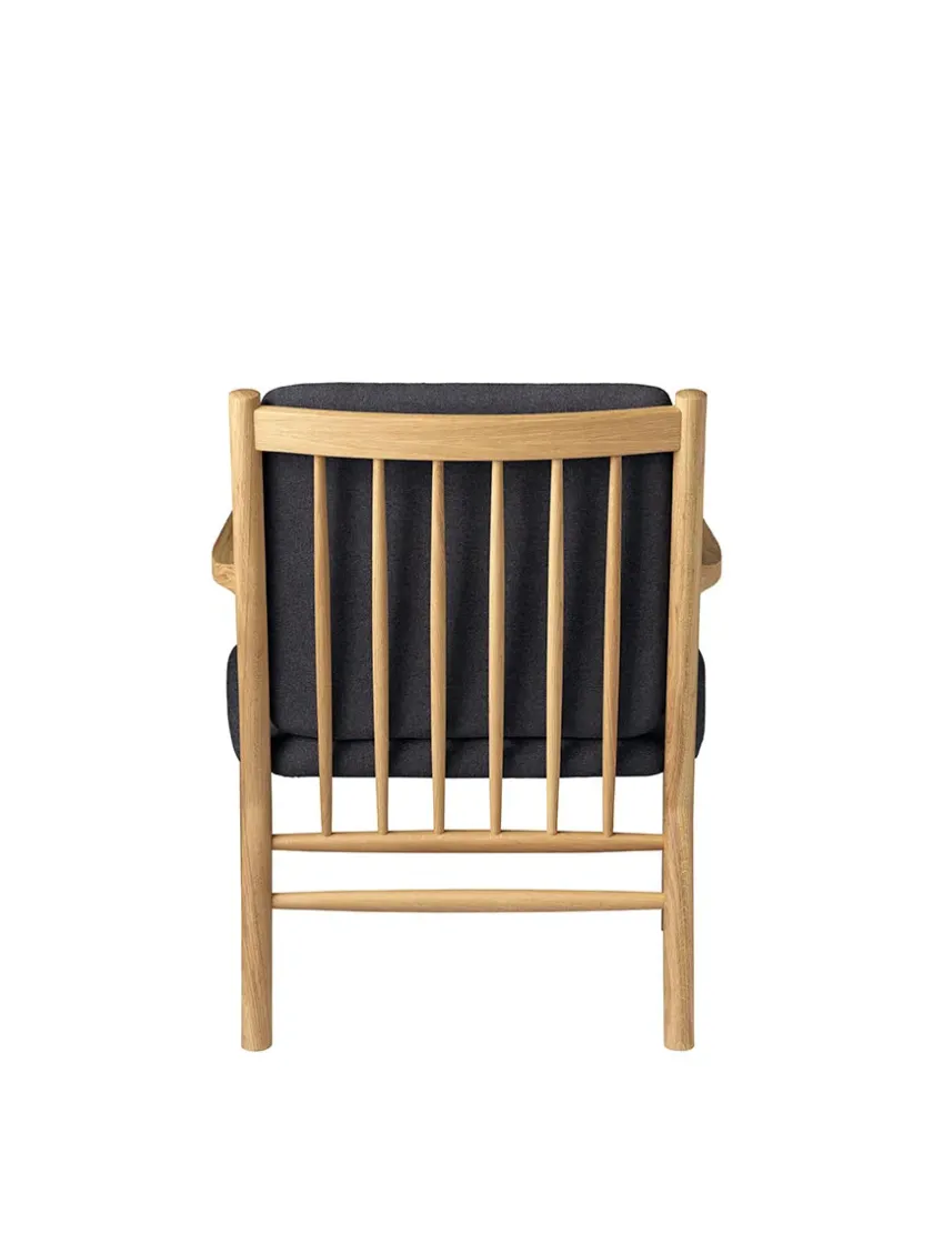 J147 lænestolene er dog ikke med tremmer i armlænene, men kun i ryggen, hvilket gør den mere enkel i sit design.