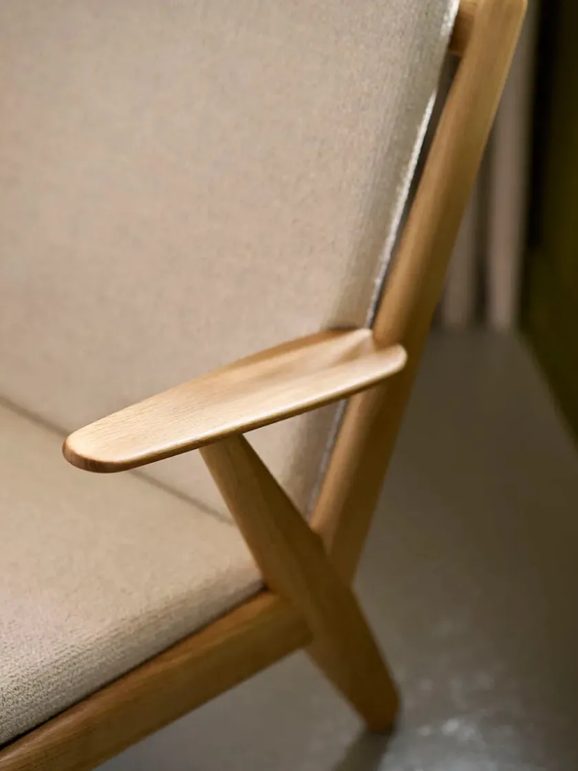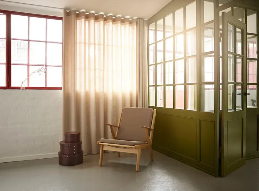 J53 lænestolen har været ude af produktion i mange år, men i 2024 relancerer FDB den smukke loungestol.