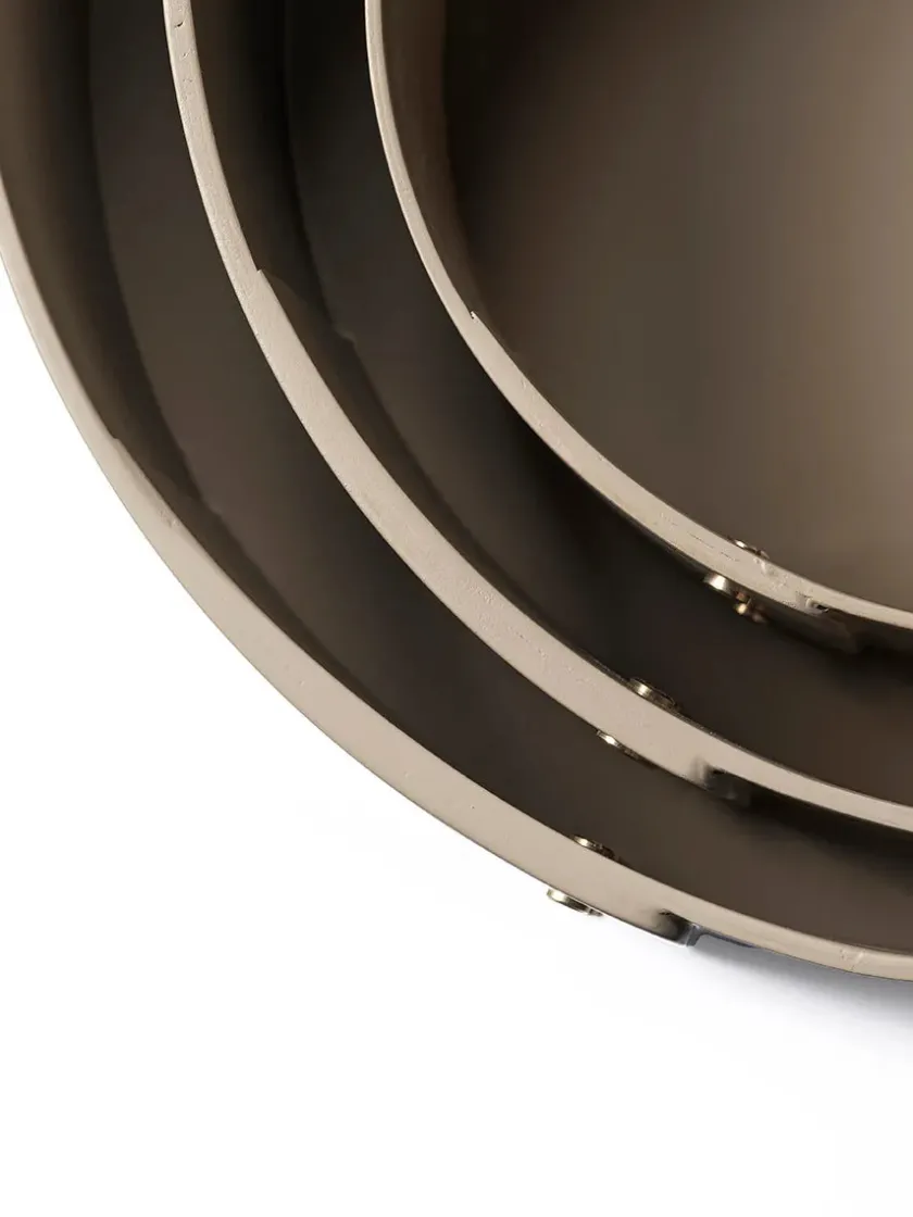 Drejø opbevaringsæskerne kommer i tre forskellige størrelser og i fire forskellige finishes.