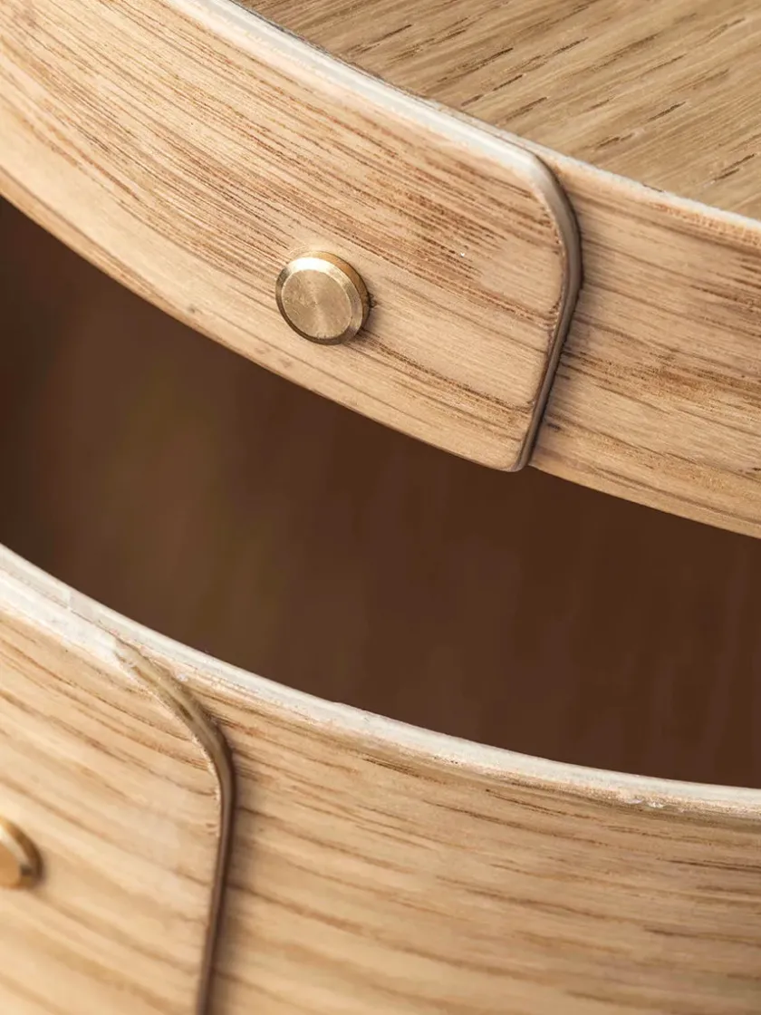 Drejø opbevaringsæskerne kommer i tre forskellige størrelser og i fire forskellige finishes.