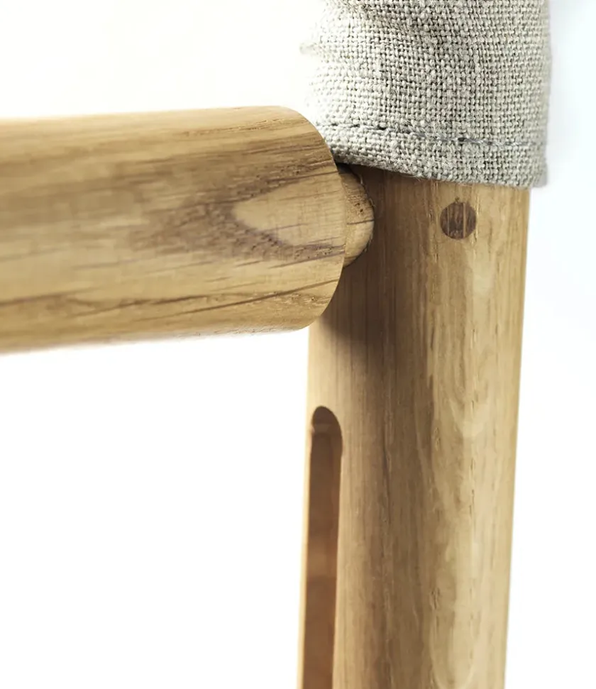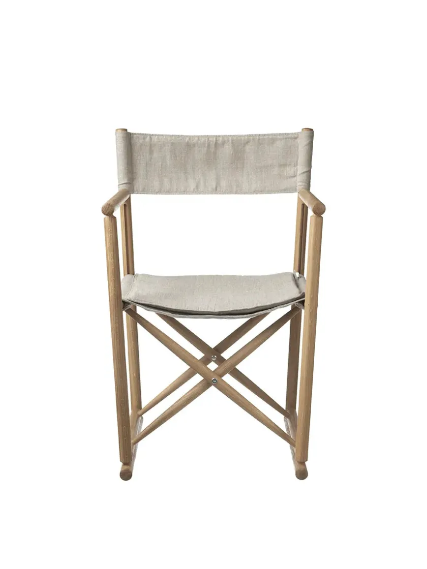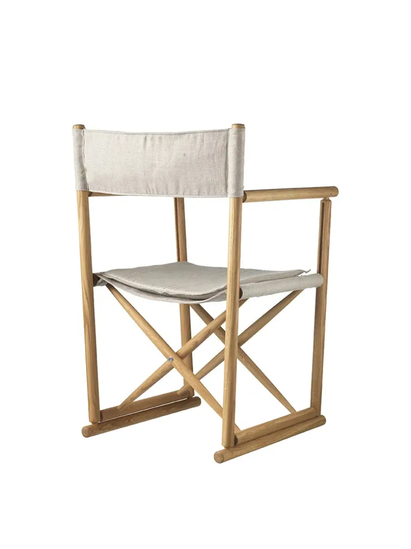 Smuk Foldestol med sæde og ryg i Oeko-tex certificeret hør. J138 foldestolen af Erik Ole Jørgensen er i massivt egetræ, så der opnås den bedst mulige holdbarhed og kvalitet.
