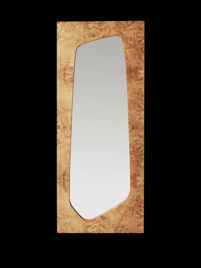 Ferm Living Folia Mirror er et kunstnerisk spejl, der forener funktionalitet og skulpturel elegance. Med sin unikke burl-finer og bløde, organiske silhuet tilfører Folia et eksklusivt præg til ethvert rum. De naturlige åretegninger i træets overflade giver hvert spejl sit helt eget udtryk, hvilket gør Folia til mere end blot et spejl – det er et stykke levende design. Placer det i entreen, soveværelset eller stuen, hvor det både åbner rummet og tilfører en følelse af luksuriøs ro. Tilgængelig i to størrelser og i enten en naturlig eller mørkbejdset finish, så du kan finde den variant, der passer perfekt til din indretning.