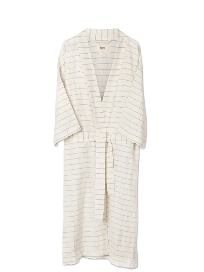 Field Robe er en lækker morgenkåbe. Den japansk inspirerede kåbe kan bruges af både mænd og kvinder. Der er intet bedre ned at pakke sig ind i en behagelig morgenkåbe på de rolige morgener. Kåben kan med dine sideslidser og matchende bælte også fungere som en stilfuld let jakke i de varme sommermåneder. Field Robe kommer også i følgende smukke farver: Chocolate/bright blue Olive/bright blue Materiale: 50% bomuld og 50% hør Vask: 30°C skånevask Farve: Off-white/chocolate Størrelse: One size Mål: B 140 x H 120 cm