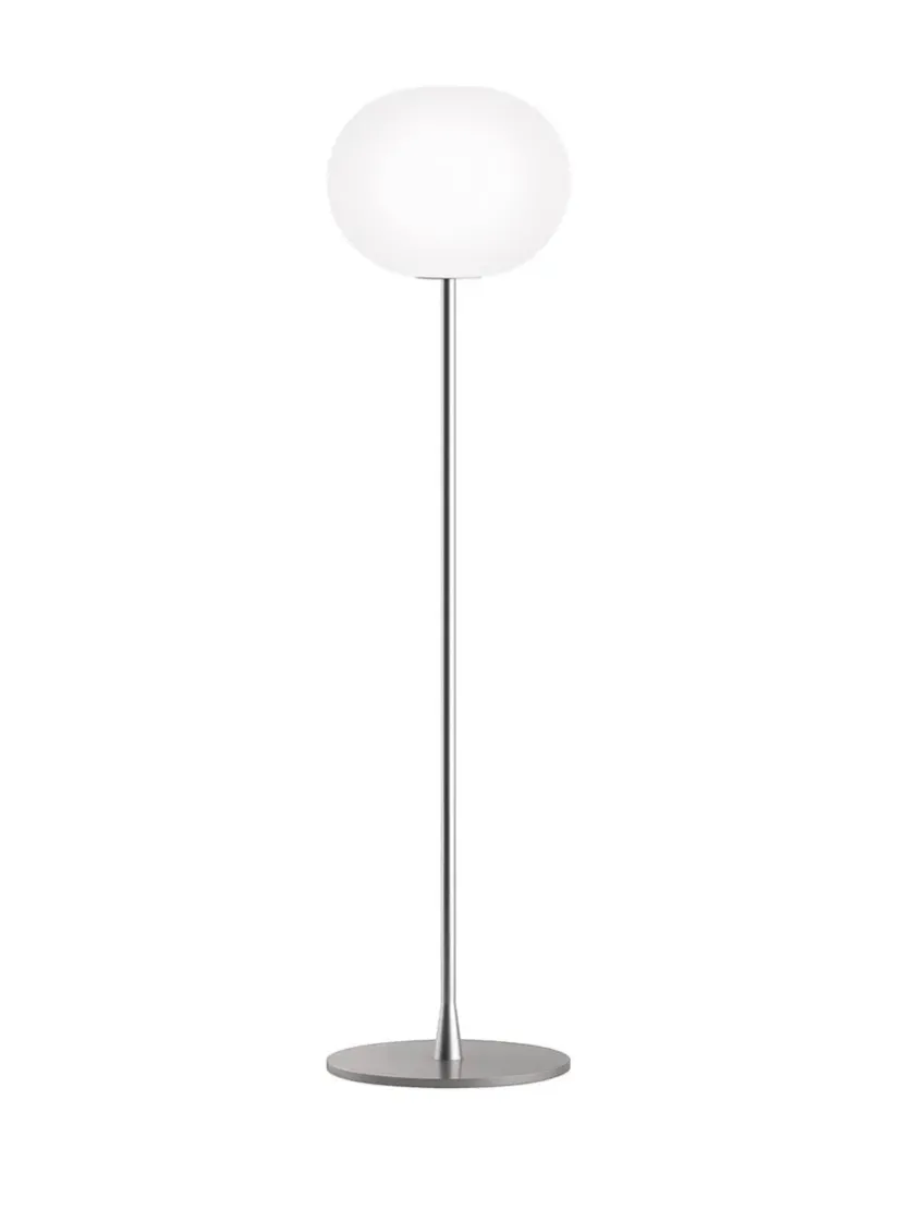 Glo-Ball gulvlampen er en opal glaslampe med en base i mat aluminium. Lampen er velegnet til åbne miljøer. Materiale: Glas Mål/vægt: F1: Ø: 330 x H: 1350 mm – 12kg F2: Ø: 330 x H: 1750 mm – 12,5kg F3: Ø: 450 x H: 1850 mm – 18,9kg Designet af: Jasper Morrison