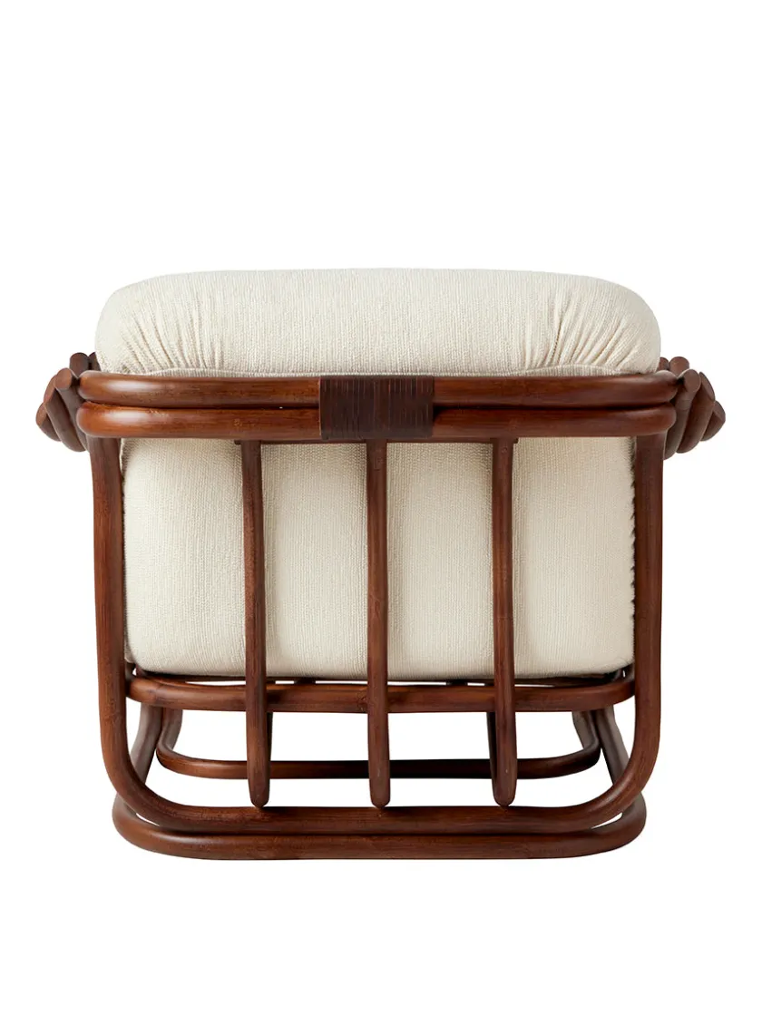 Poltrona Tria Lounge Chair forener rattanens naturlige skønhed med gennemtænkt ergonomi i et udtryk, der er både kunstnerisk og funktionelt. Rammen er skabt næsten udelukkende af dampbøjede rattanstænger, og samlet i hånden, så materialets varme glød og levende struktur kan træde frem. De karakteristiske, tredelte armlæn folder sig ud som elegante vinger og giver afslappet støtte, mens den lette ramme bevarer stolens luftige udtryk. To dybe hynder løfter komforten og giver kroppen behagelig støtte, mens den luftige konstruktion lader stolen indgå naturligt i stue, loungehjørne eller bibliotek. Et tidløst design af Carlo De Carli, nænsomt genskabt af GUBI med respekt for originalens ergonomi og med materialer, der bringer en anelse af udeliv ind i stuen.