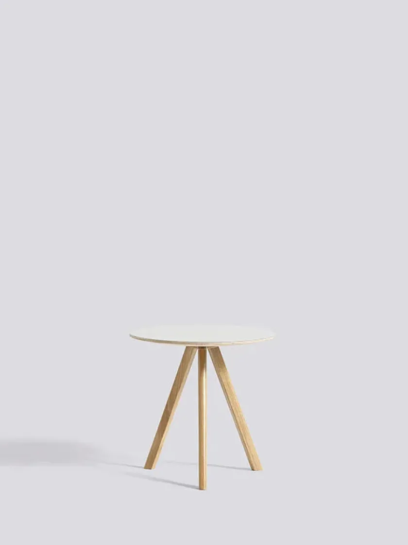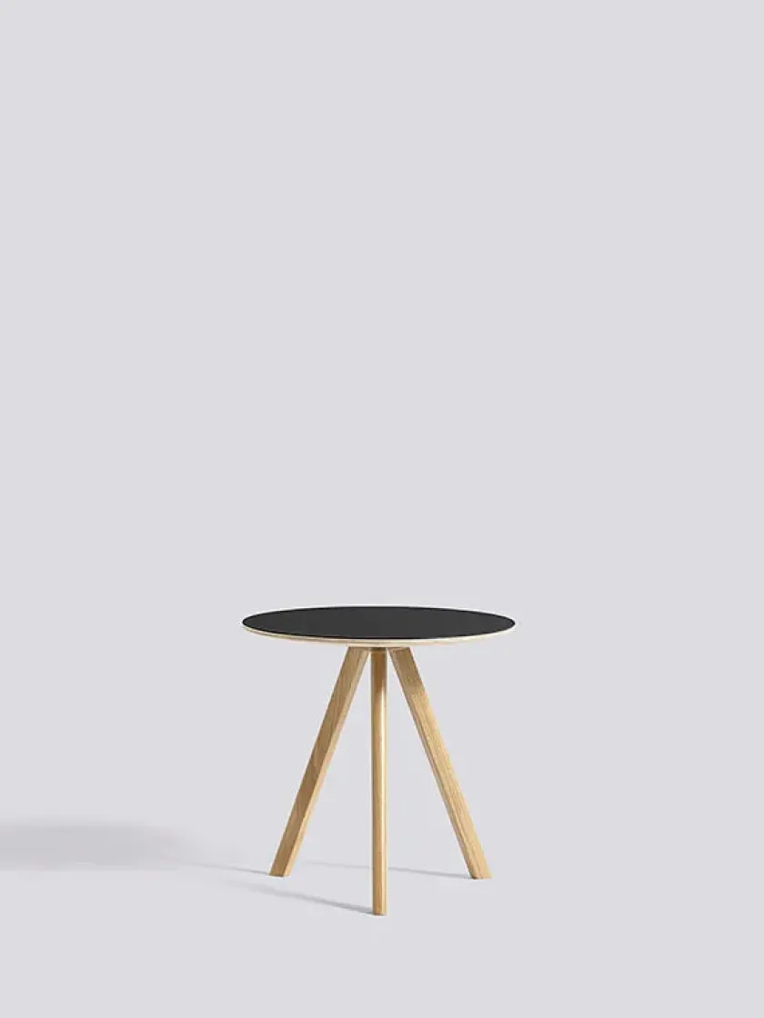 Copenhague CPH20 bord Ø50 fra Hay Designet af: Ronan & Erwan Bouroullec Mål: Ø 50 x H 49 cm Materiale: Lakeret eg (vandbaseret lak) Sortbejdset eg (vandbaseret lak) Bordplade: 18mm krydsfiner med egefiner, laminat eller linoleum. Farver: Sort Grå Grøn Off white Billedet kan afvige fra den valgte variant