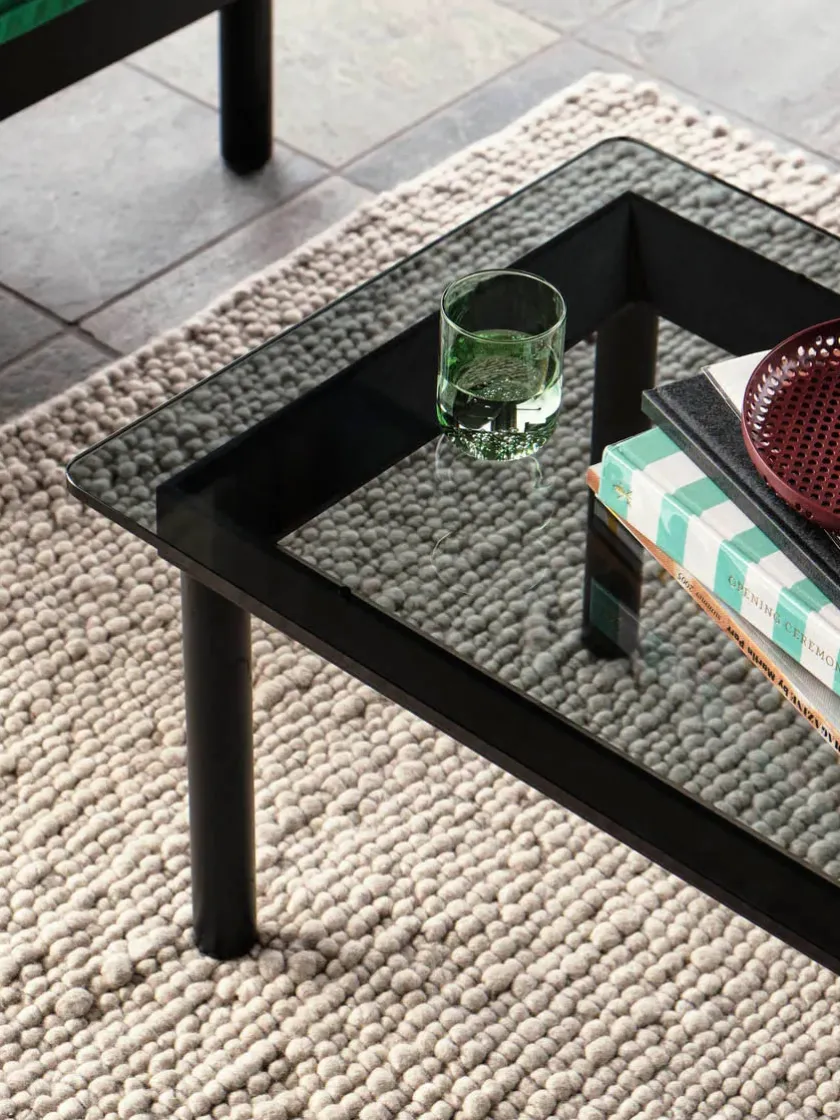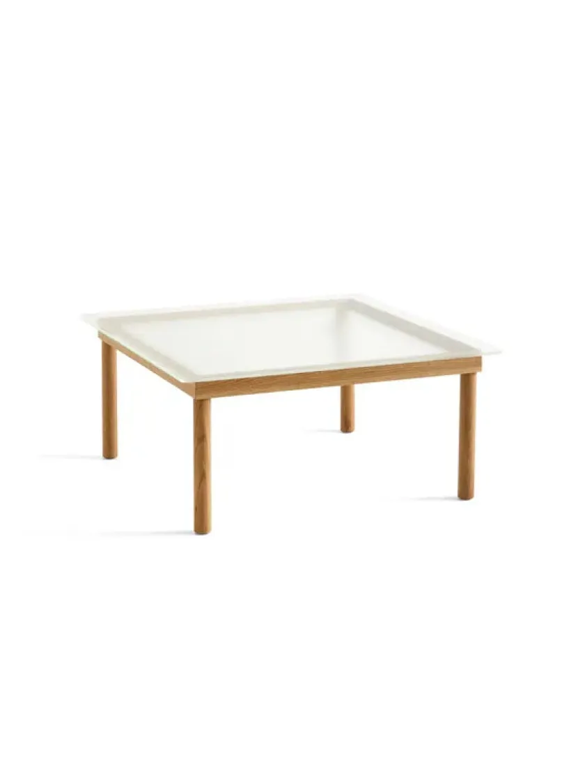 Kofi sofabordet fra HAY er designet af Martin Solem og denne variant måler 80 x 80 cm. Bordet laves med et stel i egetræ eller valnød. Bordplader: – Clear glass – Clear reeded glass Mål: Længde: 80 cm Bredde: 80 cm Højde: 36 cm
