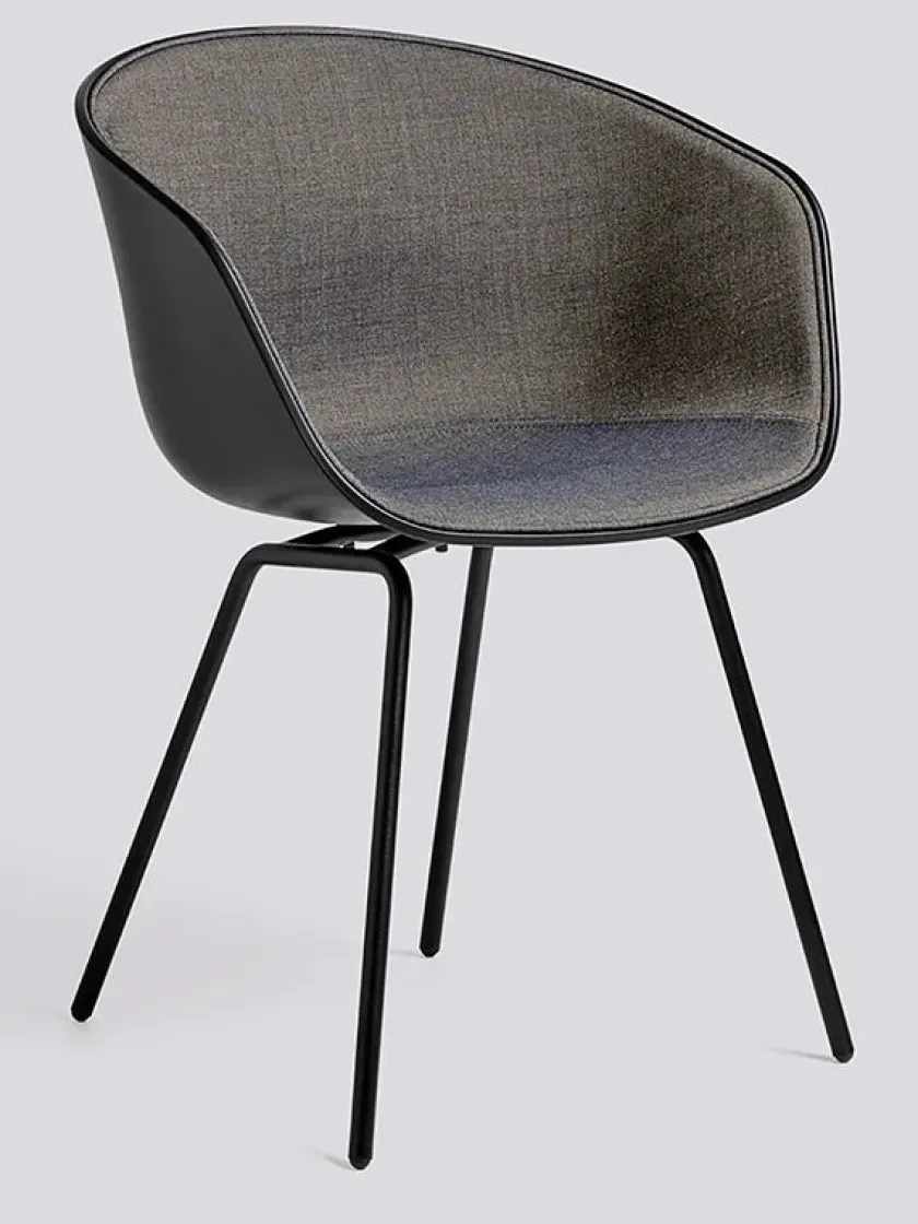 About a Chair (AAC26) forsidepolstret fra Hay Designet af: Hee Welling & Hay Mål: B: 59 x D: 52 x H: 79 cm Skal: Polypropylene i følgende farver: Sort, Hvid, Hunter, Concrete grey, Cream white, Orange, Khaki, Dusty green, Dusty blue, Pastel green, Brick, Green, Soft black, Warm red. Se alle skalfarver under Stolen tilbydes i mange forskellige stof – og lædertyper. Se mere om dem under fanen “materialer”. Ben: Sort pulverlakeret stål Hvid pulverlakeret stål Forkromet stål Der er desværre ikke billeder af alle varianter.