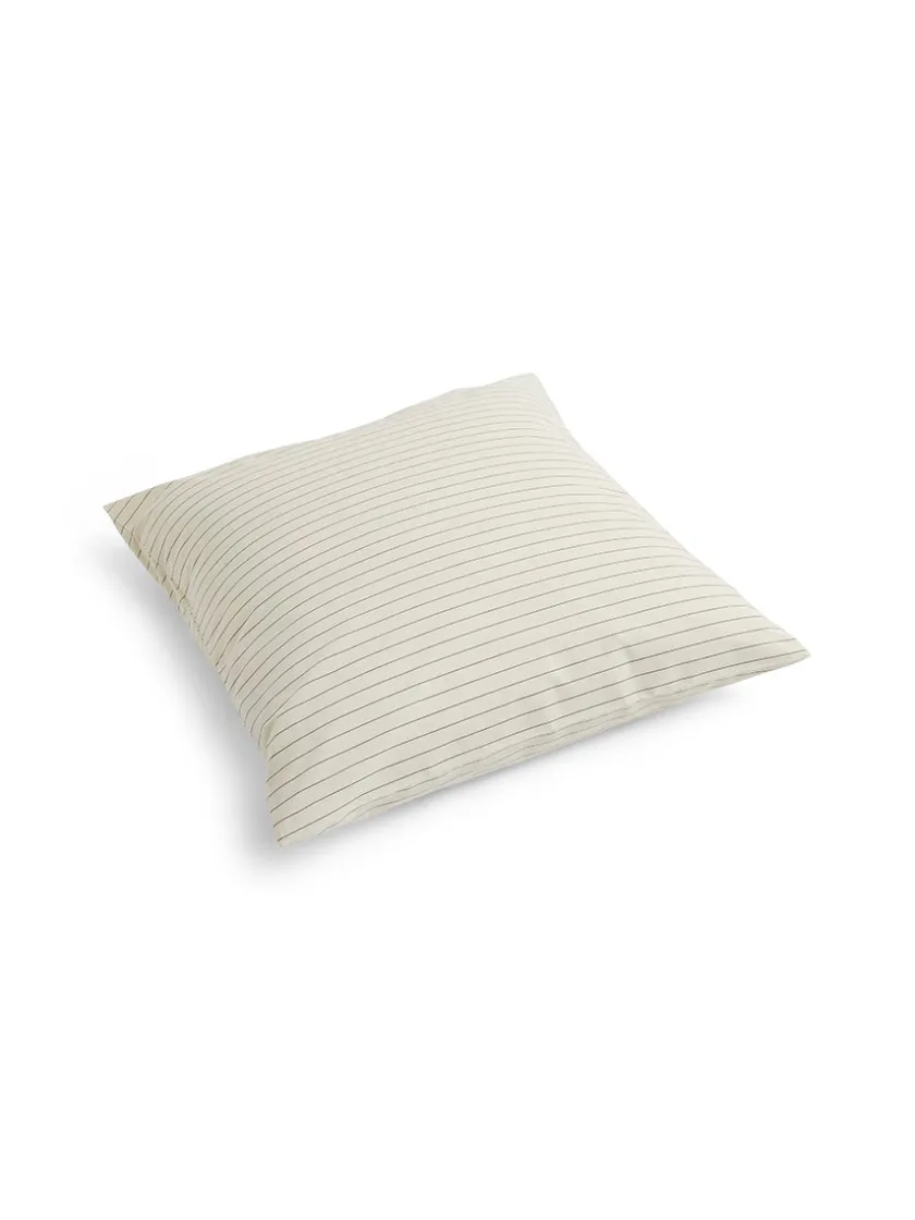 Fineline Pillow Case fra HAY er et elegant og tidløst pudebetræk, der kombinerer klassiske striber med blød, økologisk bomuld. Det er fremstillet i percalevævet bomuld, som føles sprød og kølig mod huden og giver en behagelig, frisk fornemmelse nat efter nat.