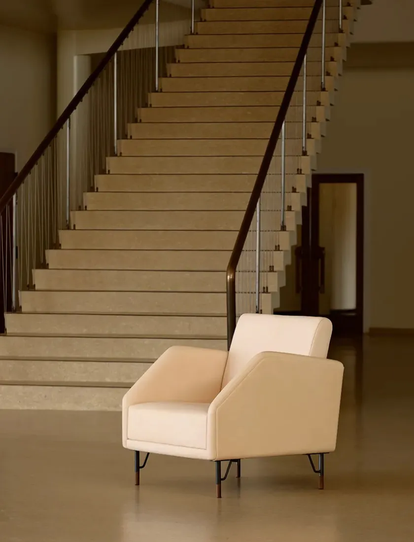 Nu relancerer House of Finn Juhl 77-Stolen. 77 Stolen er designet i 1953 af Finn Juhl. Designere Finn Juhl eksperimenterede i denne periode med strømlinethed og et mere industrielt udtryk. Det fornemmes tydeligt i 77-Stolen, som er mere kantet i formsproget og ikke med det samme organiske udtryk med “svung”, som Finn Juhls designs ellers har båret præg af. På trods af den nye stil står det dog stadig klart, at 77 Stolen stadig er en Finn Juhl klassiker. Stolen fås også med polstring i tekstil. Kontakt os endelig for flere polstringsmuligheder.