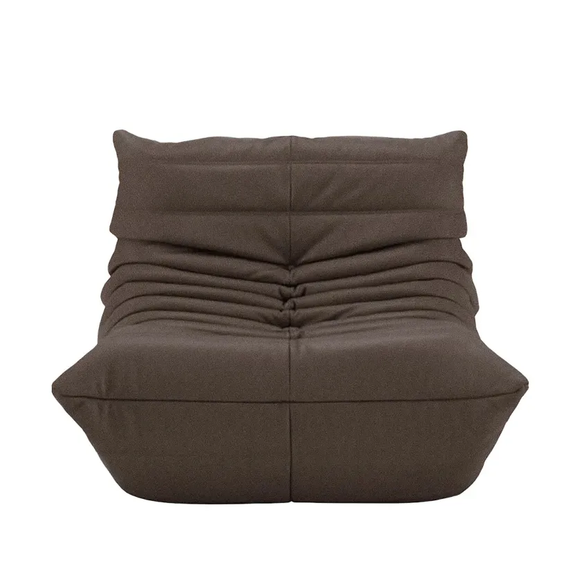 Togo Fireside Chair er den ikoniske lænestol fra Ligne Roset designet af Michel Ducaroy. Den lave, generøse profil og de karakteristiske bløde folder omfavner kroppen og inviterer til afslappet komfort i stuen eller læsehjørnet. Konstruktionen er udelukkende opbygget af flere densiteter skum, som giver en støttende, men eftergivende siddeoplevelse uden hårde kontaktpunkter. Betrækket fremhæver det afslappede udtryk og gør stolen smuk alene eller som del af en komplet Togo opstilling. Formen er tidløs og fungerer lige godt i moderne såvel som klassiske interiører hvor materialer og farver kan tilpasses dine ønsker.