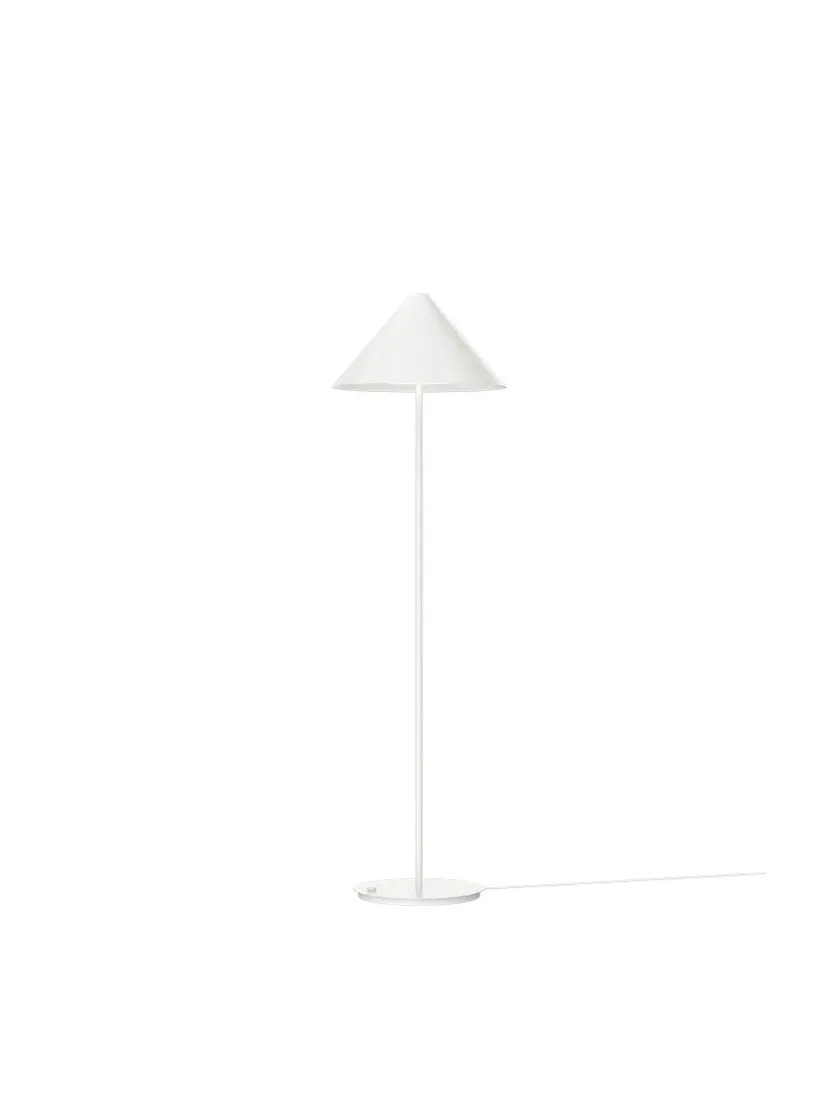 Keglen kollektionen er udvidet med blandt andet denne gulvlampe. Keglen gulvlampe karakteristiske koniske skærm har en indbygget buet afskærmning. Det giver et smukt og blændfrit nedadrettet lys. Der udsendes også et blidt, stemningsskabende lys opad gennem en diskret åbning i toppen af skærmen.