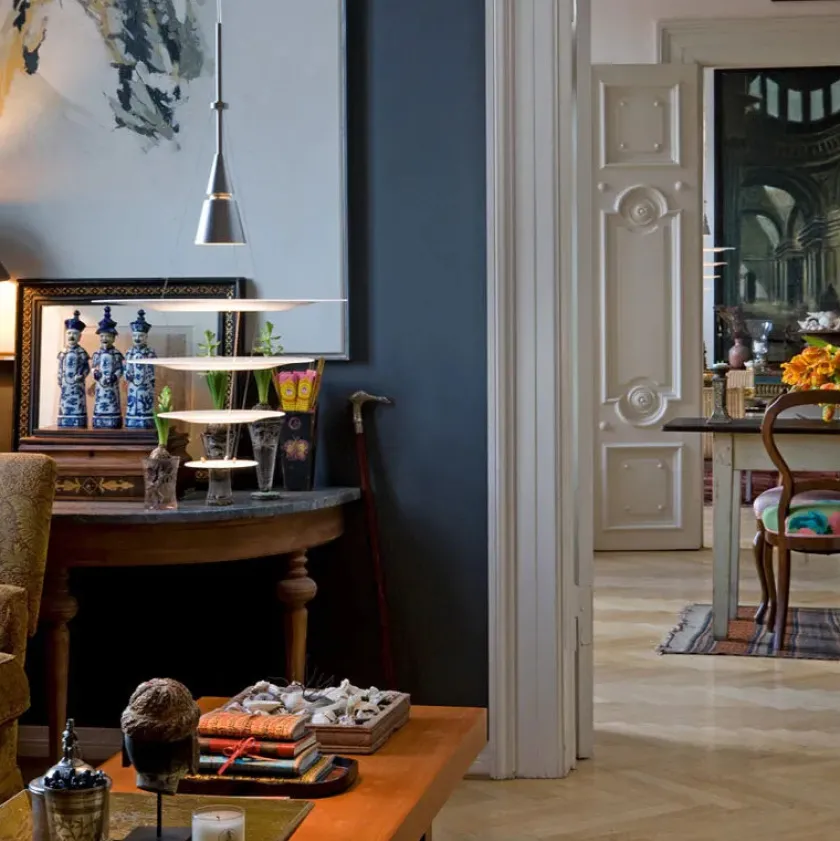 Materiale: Skærme i matlakeret akryl, kegle i børstet og lakeret aluminium.