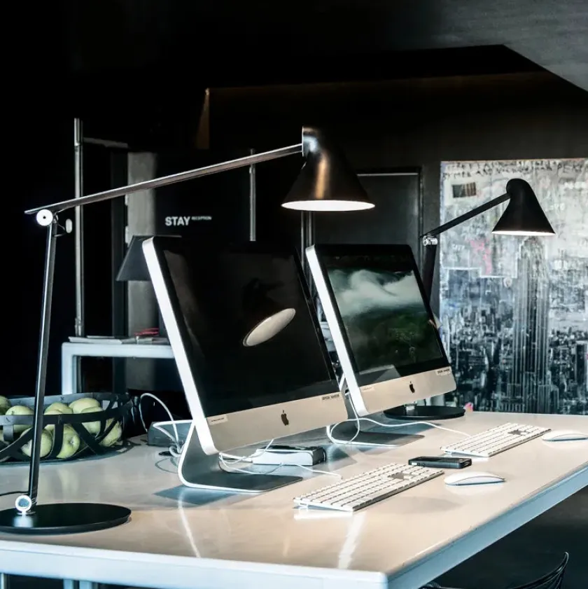 NJP Lampen er designet af Oki Sato fra det japanske designstudie nendo. NJP bord er en nyfortolkning af den klassiske arkitektlampe. Lampens enkle og stilrene udseende betyder, at dens funktionelle komponenter er blotlagt, hvilket giver den et udtryk, der taler for sig selv. Lampens anvendelsesmuligheder er nøje overvejet: Armens to led giver stor fleksibilitet og gør det let at justere lampen. Som en ekstra detalje er fjedrene i armens led synlige, hvilket øger lampens dekorative udtryk. Åbningen på bagsiden af lampeskærmen, som vender mod armen, sikrer også trinløs indstilling af hovedet og ventilation til LED-enhederne.