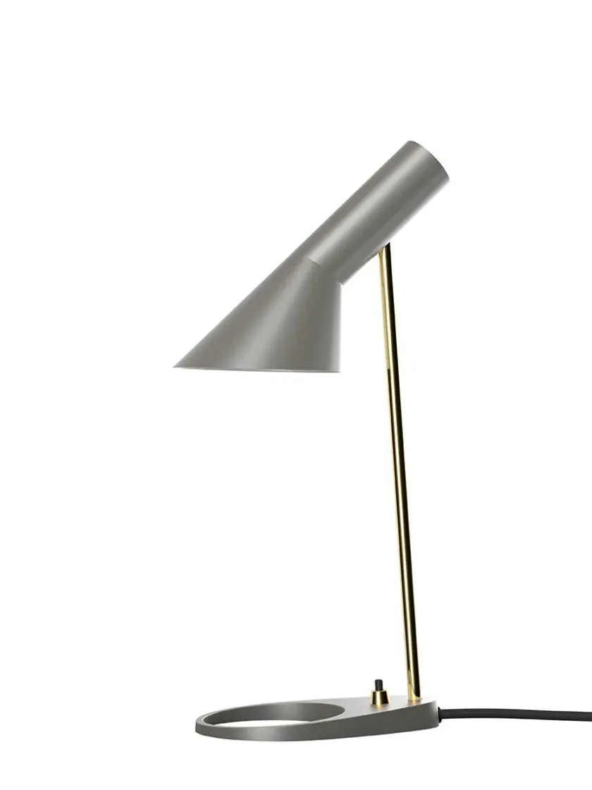 Louis Poulsens ikoniske AJ bordlampe, designet af Arne Jacobsen i 1960, præsenteres nu i en raffineret version i grå og messing. Denne nye udgave tilføjer et eksklusivt og varmt udtryk til den ellers stramme og funktionalistiske lampe – og skaber en elegant kontrast mellem det matte grå og det gyldne metal. AJ lampens karakteristiske asymmetriske skærm og vipbare hoved sikrer stadig det præcise, retningsbestemte lys, der gør den ideel til både læsning, arbejde og stemningsbelysning. Den indre hvide skærm reflekterer lyset effektivt og uden blænding, mens det rene design passer ind i både moderne og klassiske indretninger.