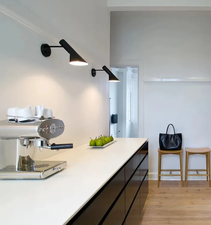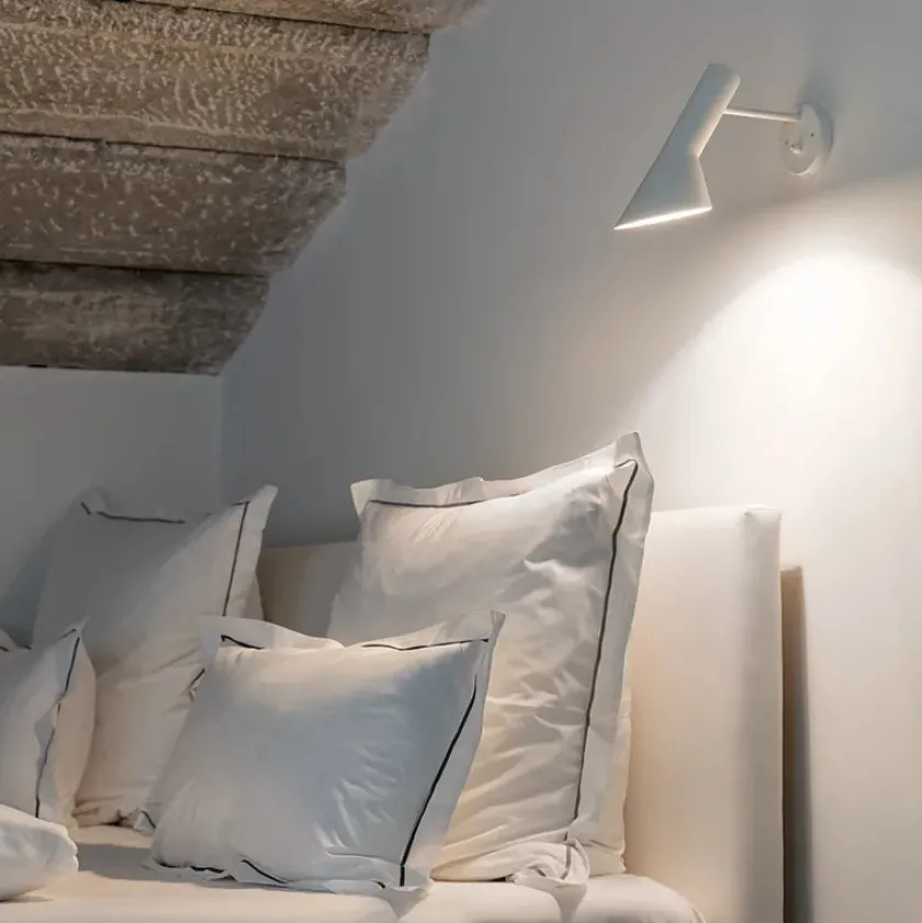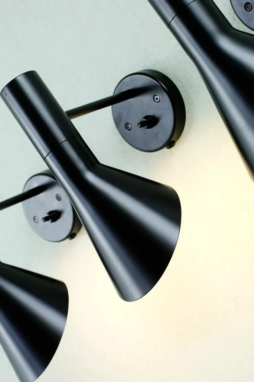 AJ væglampen af Arne Jacobsen fås i et stort udvalg af farver fra Louis Poulsen. AJ væg blev designet i 1960 af Arne Jacobsen til SAS Royal Hotel i København.