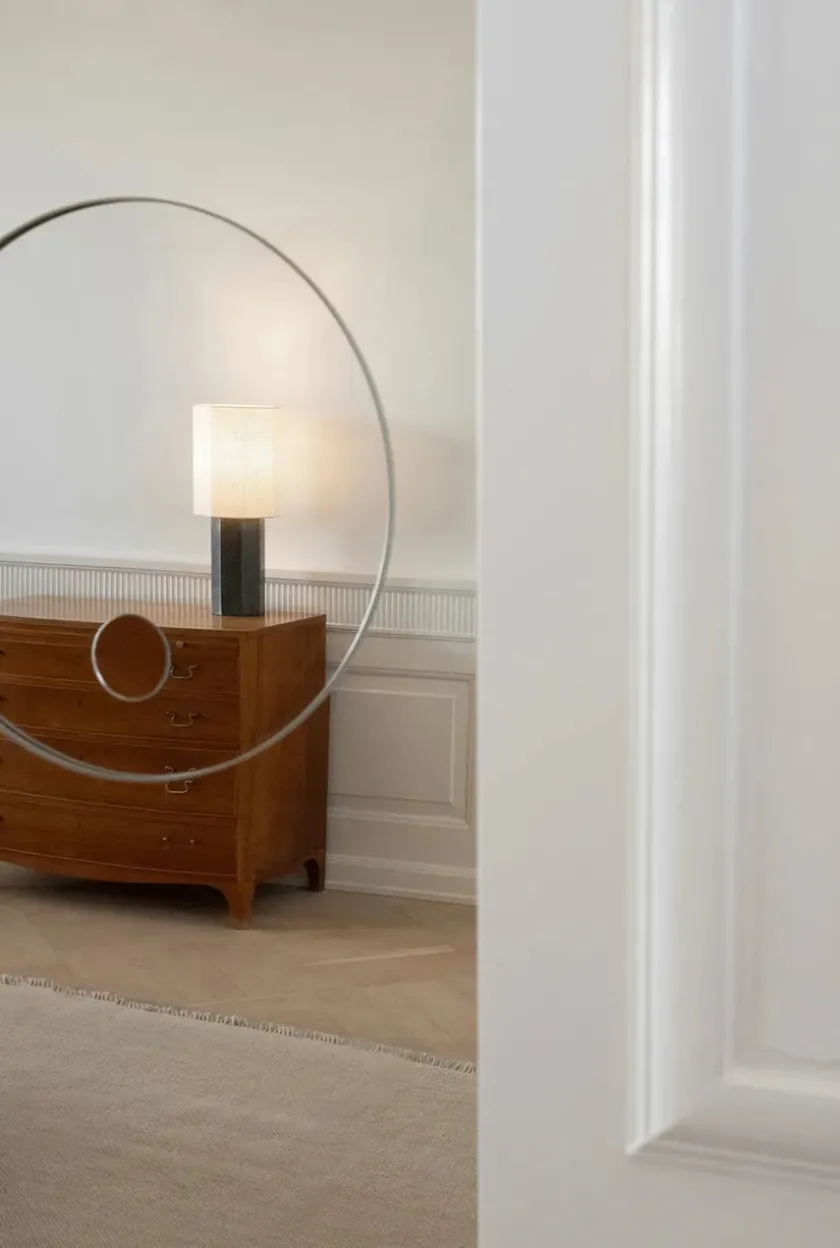 Louise Roe Spots<The Eight Over Eight Lamp Small, beige travertine fra