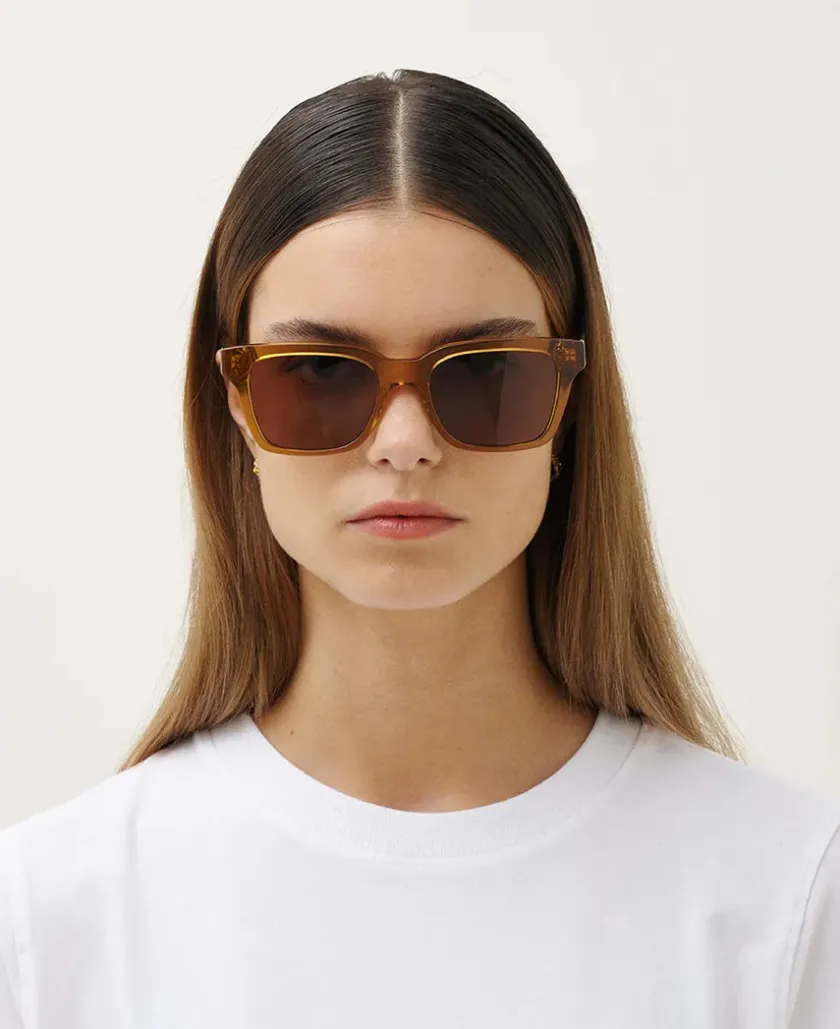 Seje solbriller fra MessyWeekend. DEAN solbrillen er en klassisk solbrille. Her med stel i brown coffee, der bløder solbrillen op.