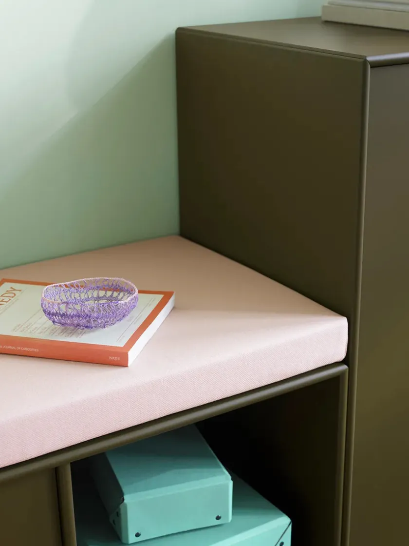Sædehynde der passer perfekt til Montanas Rest III. Hynden her er i det lækre tekstil, Reflect, fra danske Kvadrat. Det slidstærke tekstil er praktisk og let at vedligeholde. Brug hynden på Rest III i entréen til når der skal tages overtøj eller sko på.