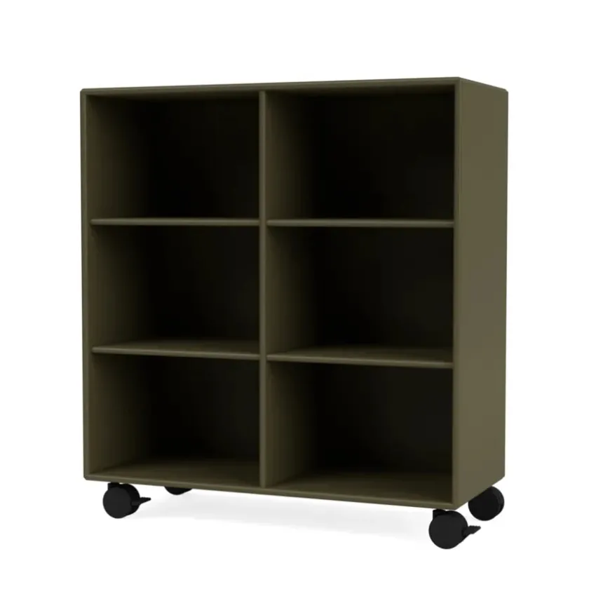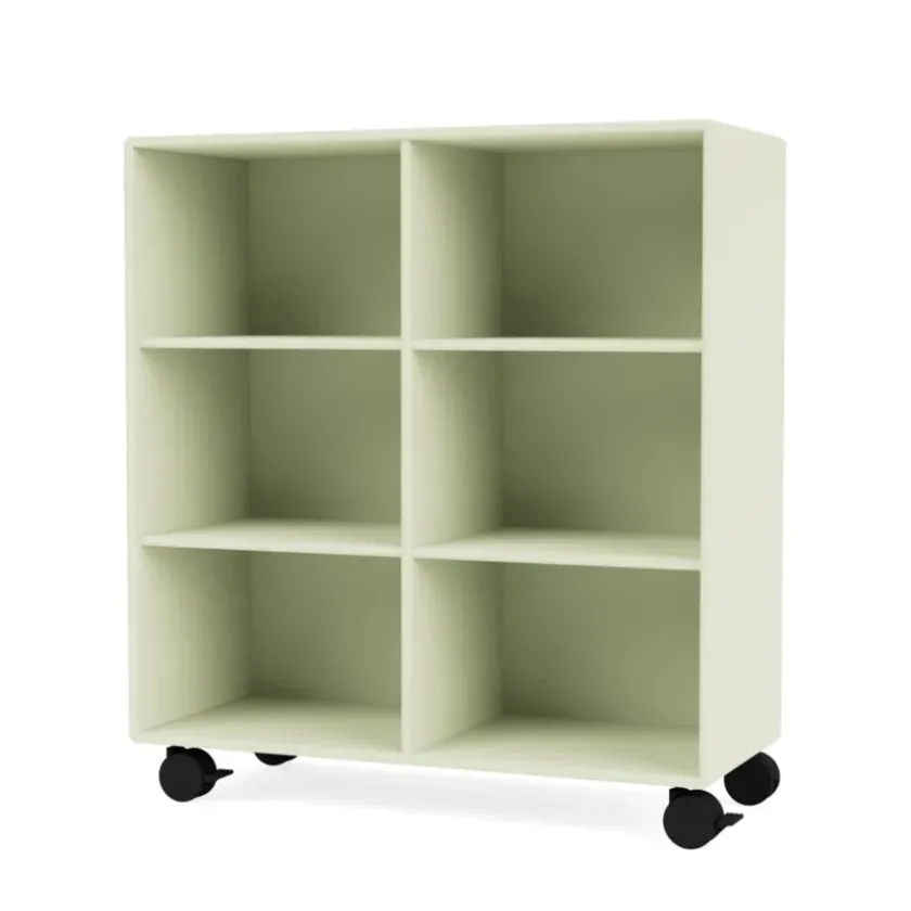 Reolen kan bestilles i alle Montanas 40 lakfarver med enten ophæng, sokkel, ben eller hjul.