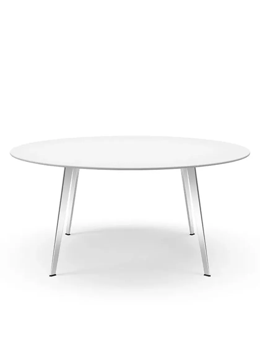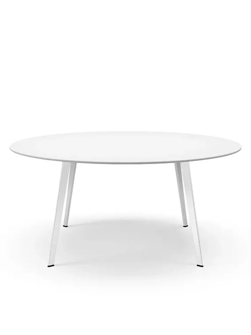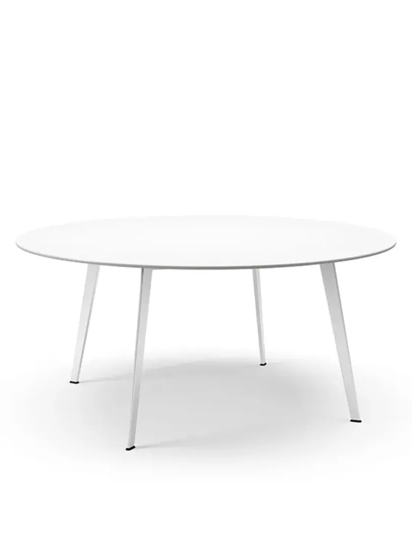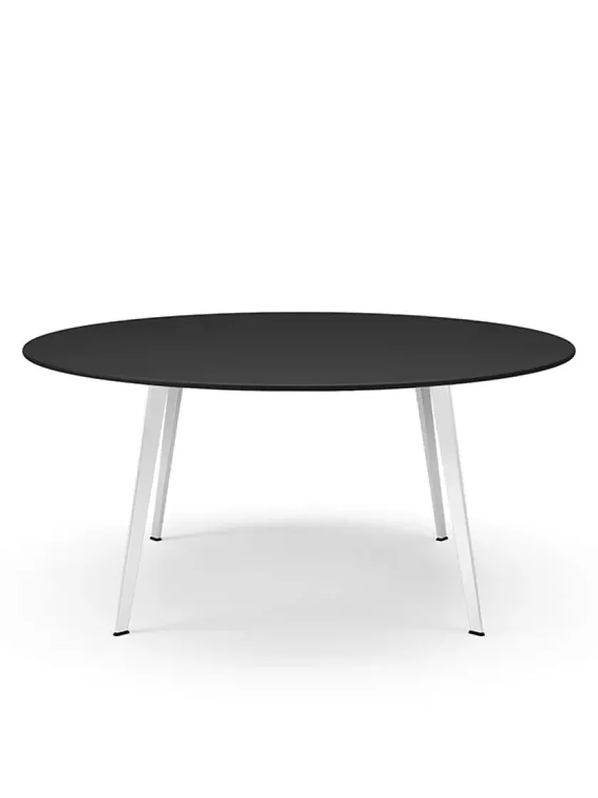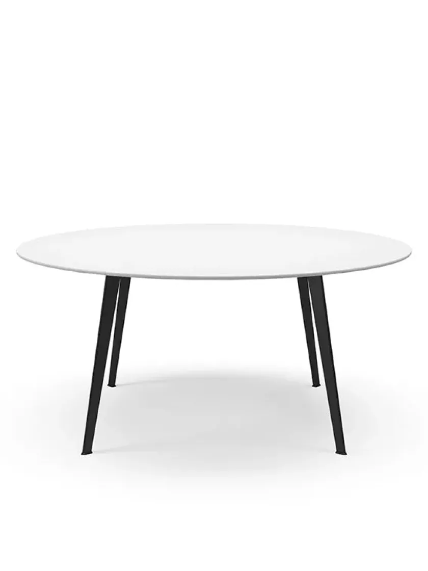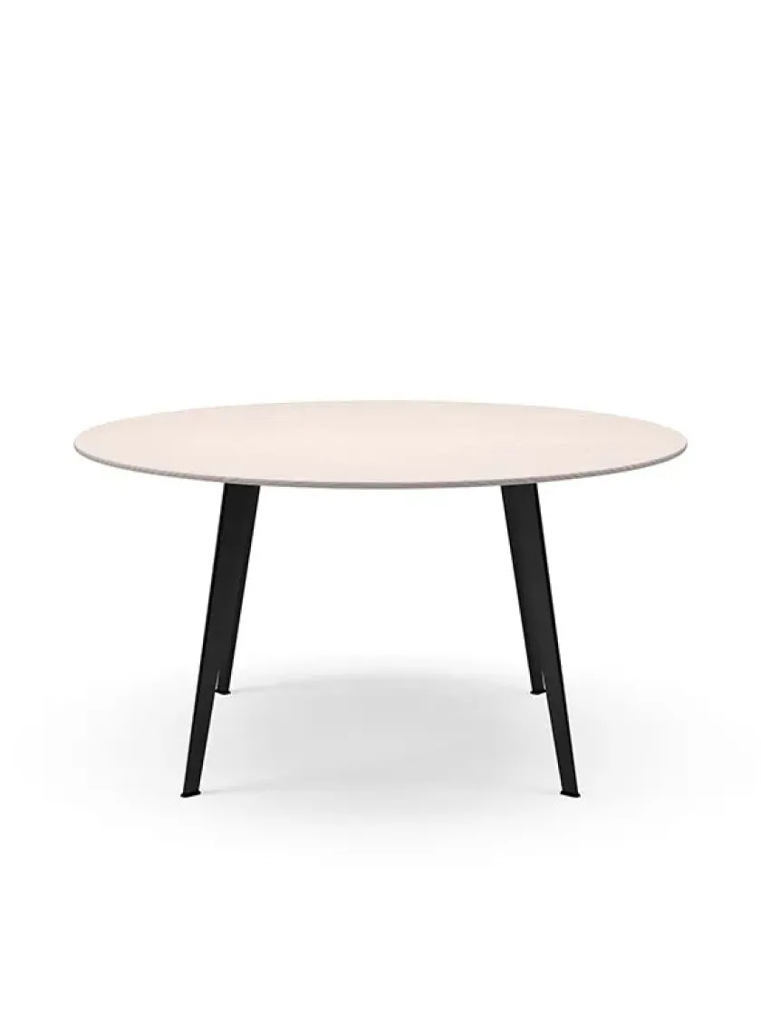 Mål: Ø: 160 cm Borde med bordplade i laminat og linoleum har en samlet højde på 73 cm.
