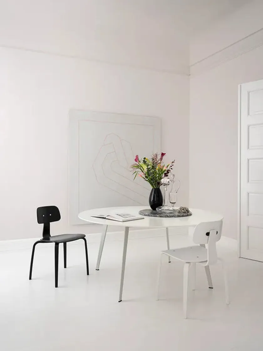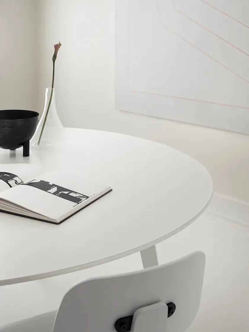JW160 spisebordet fra Montana er designet af Jakob Wagner. JW bordserien er lanceret i 2017 og laves i alt i 8 forskellige størrelser. Alle bordene laves med lakeret stel i farvet sort eller Snow eller stel i poleret aluminium.
