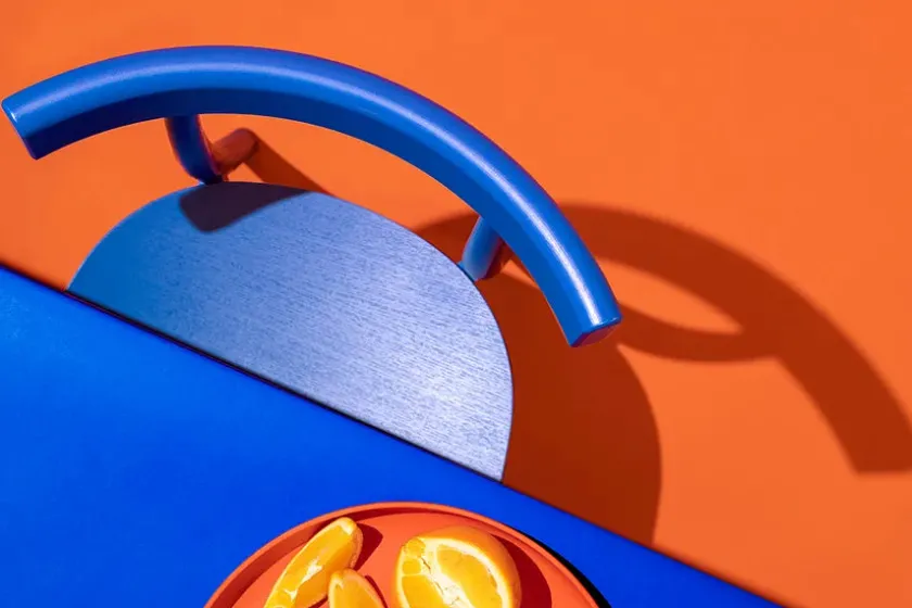 Nine Spisebordsstole<Skinny wooden chair, ash/blue fra