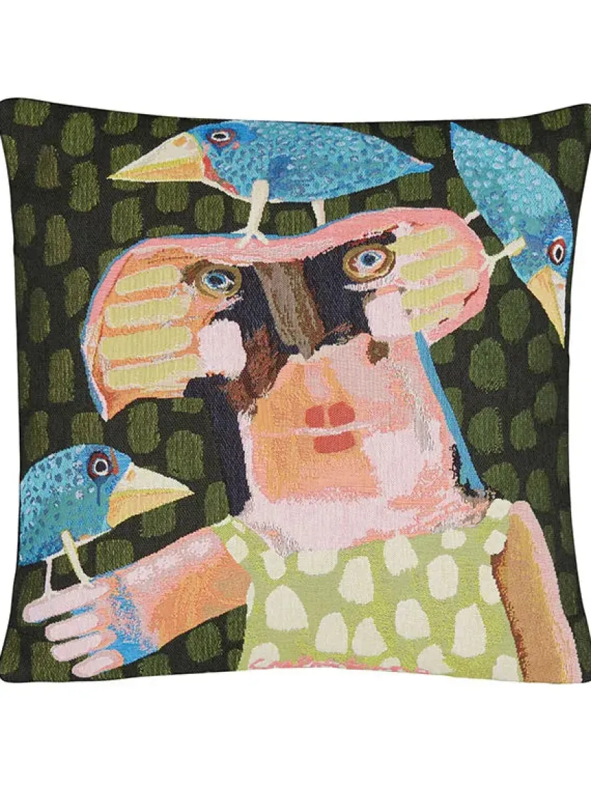 Sofapude fra Poulin Design med kunstværket ‘Dame med torpedofugle’ af Leif Sylvester.