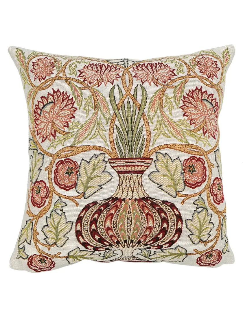 Jules Pansu Flowerpot vævet pude fra Poulin Design. Puden er inspireret af William Morris.