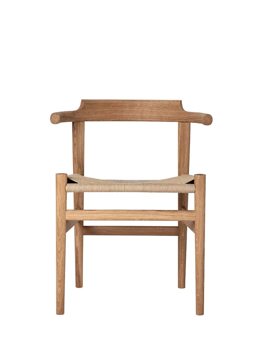 PP68 stol af Hans J. Wegner. PP68 er designet til at være praktisk. De korte armlæn gør det let at sætte sig i stolen og bidrager også til stolen åbne og lette udtryk. Stolen produceres af PP Møbler og laves her med sæde i sort eller natur papirgarn i eg, ask eller bøg.