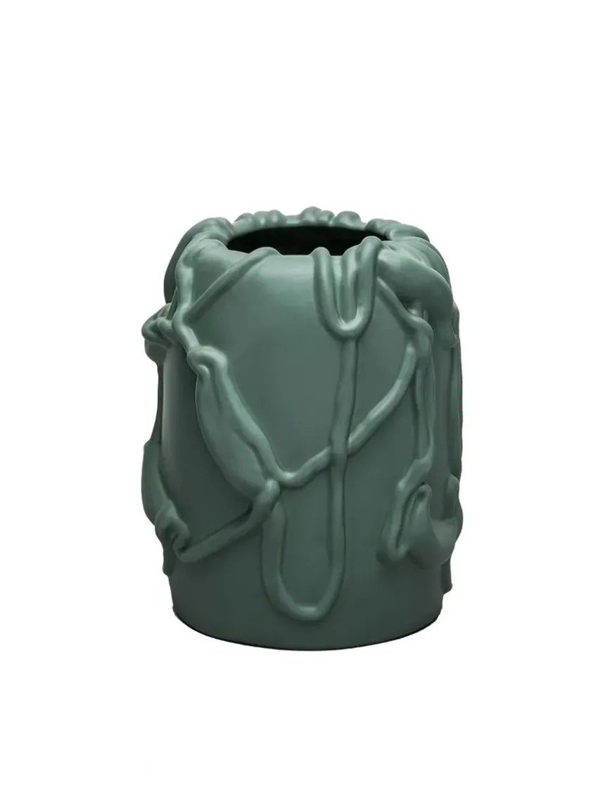 Jam Vase fra raawii designet af Michael Kvium i en flot søgrøn, eller afdæmpet grøn farve. Vasen er håndlavet og glaseret i Portugal, og der kan derfor forekomme små variationer, som tilfører kvalitet til produktet. Brug vasen til blomster, eller lad den stå alene.
