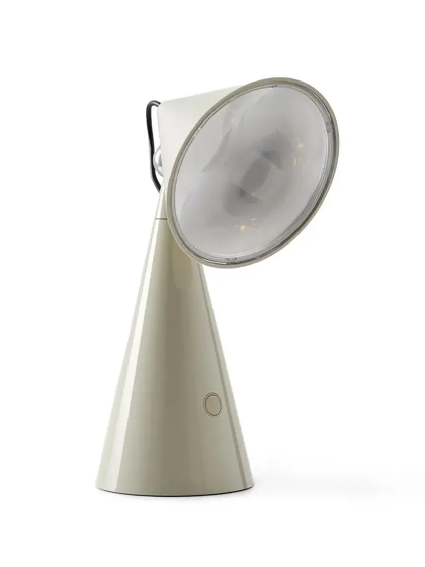 POSE Portable bordlampen er en innovativ og stilfuld lampe, der kombinerer funktionalitet med kunstnerisk design. Inspireret af optisk fysik og brugen af flade linser skaber lampen unikke lysstråler, der reflekterer principperne fra fyrtårne, trafiklys og videnskabelige instrumenter. Dens koniske form og karakteristiske silhuet giver den et skulpturelt udtryk, mens den samtidig tilføjer et strejf af humor og personlighed til enhver indretning. Med en kraftig lysudgang og præcis justerbarhed tilpasser Pose sig nemt til forskellige omgivelser, uanset om den bruges i hjemmet eller professionelle miljøer. Dens minimalistiske, men markante design gør den til et statement-piece, der både er funktionelt og æstetisk tiltalende.